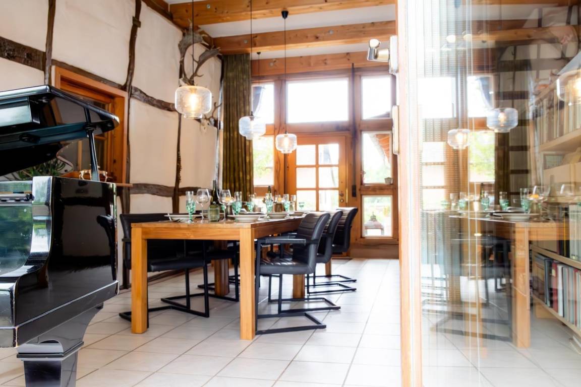 Herzlich willkommen in unserem einzigartigen Natur-Refugium. Zentral in Deutschland gelegen, mit bester Anbindung in alle Himmelsrichtungen, können Sie hier mit Familie, Freunden und Kollegen eine wunderbare Auszeit genießen. Auf großzügigen 250 qm erwartet Sie eine reichhaltige Ausstattung für einen unvergesslichen Aufenthalt voller Ruhe, Wellness, Natur und Musik. Das Haus mit Geschichte bietet alles für einen erholsamen Urlaub, eine private kleine Feier, eine erfolgreiche Workation, einen Workshop oder einen kleinen Empfang für Kunden und Geschäftspartner. Wir unterstützen Sie sehr gern in allen Belangen und Wünschen, damit Ihr Aufenthalt unvergesslich wird.