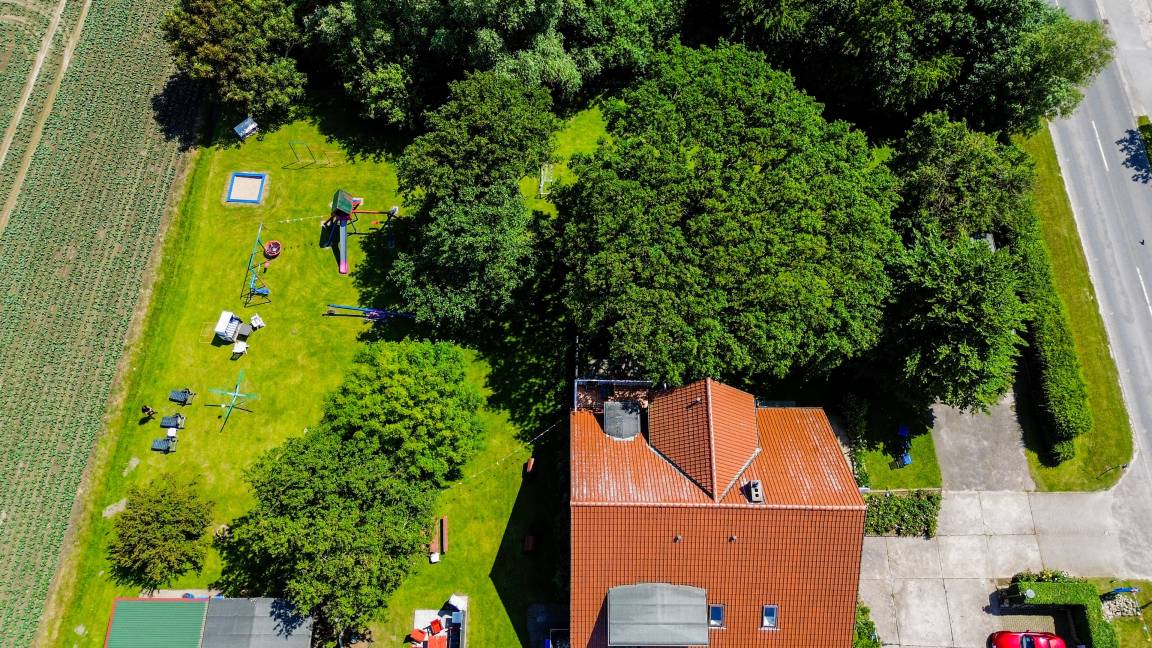 Es gibt auch noch ein großes Spielhaus ca. 30 m² groß mit Fussballkicker, Dartscheibe und noch vielen weiteren Spielmöglichkeiten.