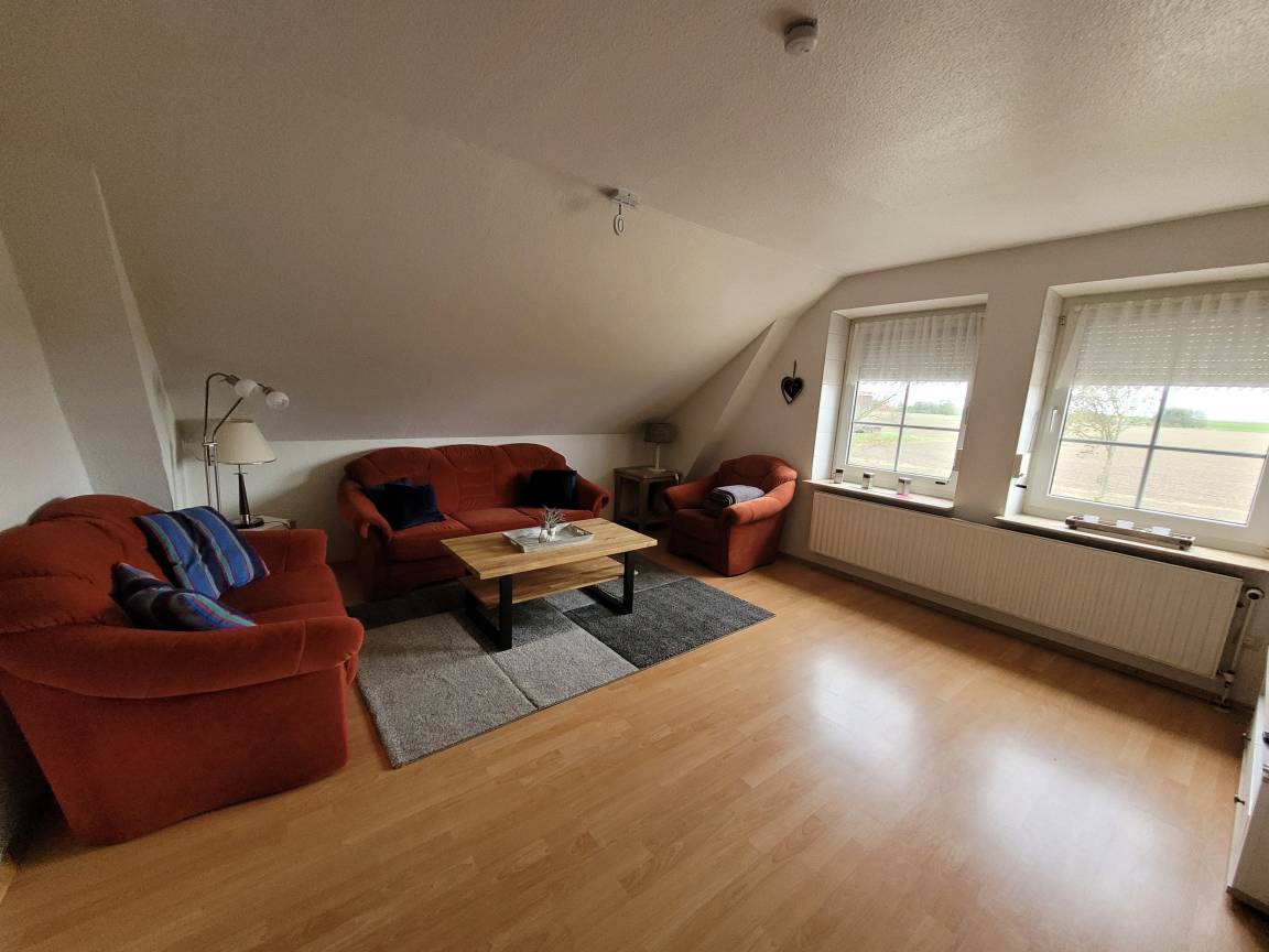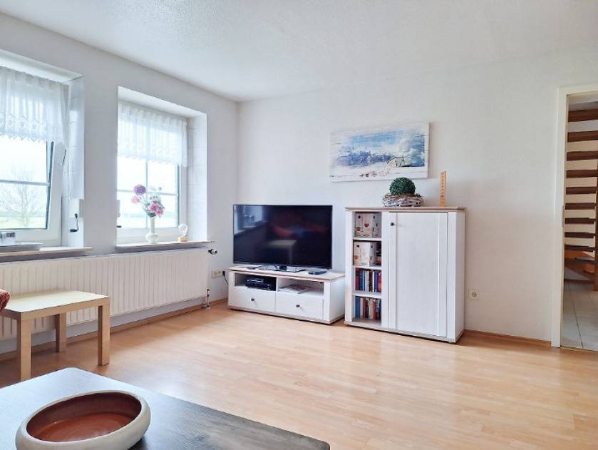 Die Ferienwohnung Seebär hat ein großes Wohnzimmer mit 3-Sitzer Sofa, 2-Sitzer Sofa und Sessel, Fernseher, DVD-Player, Radio, SAT-TV.