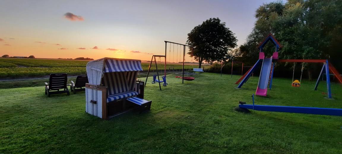 Für unsere kleinen Gäste ist ein eigener Spielplatz mit großer Spielfläche mit einer Wippe, Kletterturm mit Rutsche, mehrere verschiedene Schaukeln, großes Trampolin, Fussballtor und Sandkasten vorhanden.