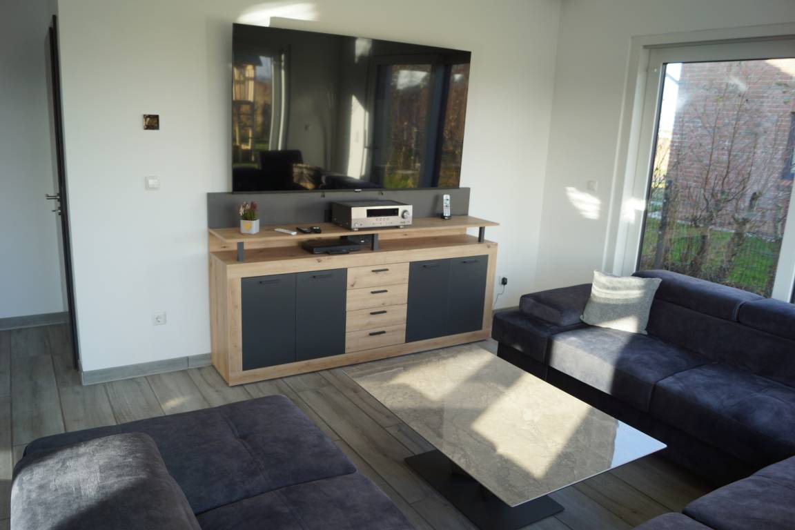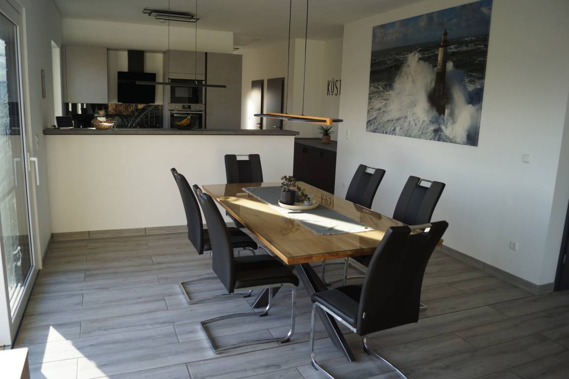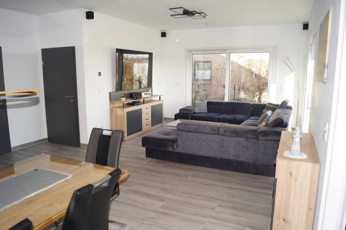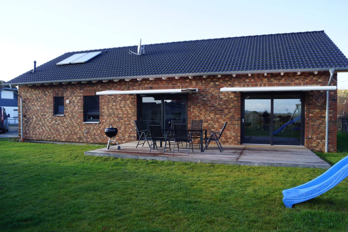Das komfortable, ebenerdige Ferienhaus wird erstmals zum Saisonbeginn 2026 vermietet und lädt bei sommerlichem Wetter in den 600m² großen, vollständig eingezäunten Garten mit 40m² Holzterrasse ein. Auch bei "nordischem" Wetter bietet das Haus beste Bedingungen für erholsame Urlaubstage. In der großzügigen Sauna oder im beheizten Whirlpool kann man sich nach einem Spaziergang schnell wieder auf den gemütlichen Abend vorbereiten. Die Heimkinoanlage mit 75"-4K-Smart-TV, Blue-Ray Disk-Player und 5.1 Dolby-Surround-System sorgen für angenehme Unterhaltung.