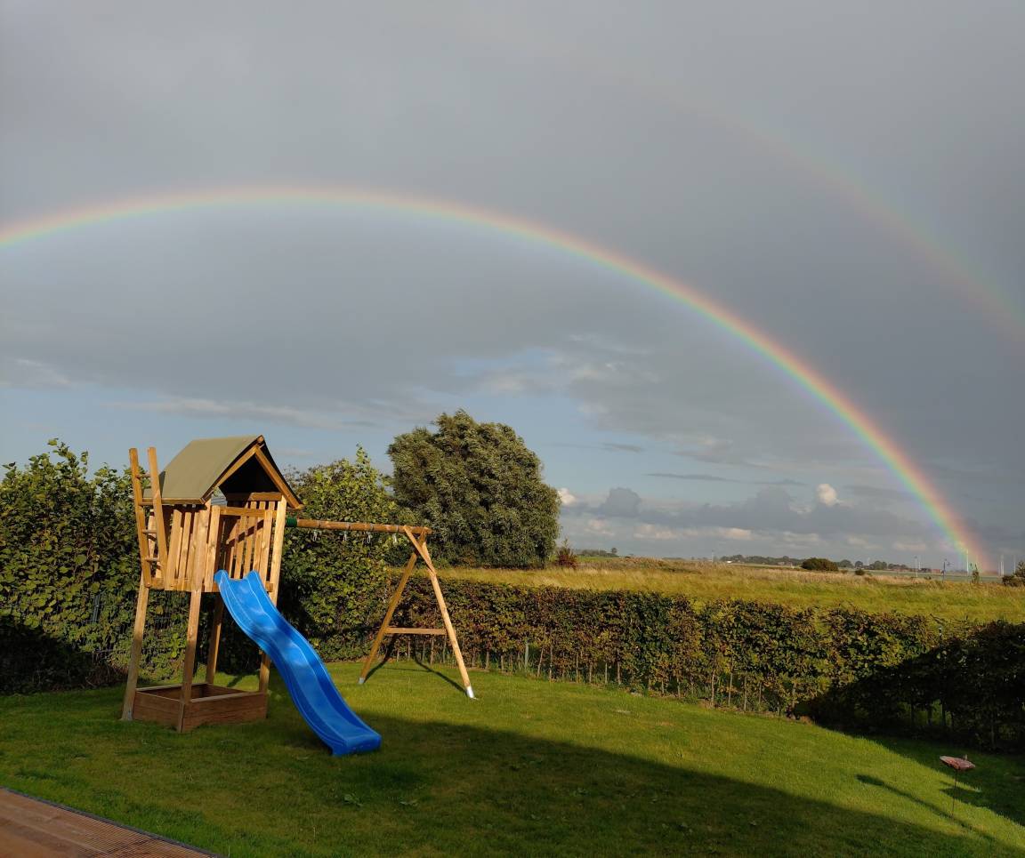 Kinder dürfen sich auf die Spiel- und Schaukelanlage mit Rutsche und Kletterturm, den Sandkasten und die eigene Sitzgarnitur freuen. Einfahrt und Zuwegung sind mit verschließbaren Toren zur Straße versehen, so dass Hunde unbesorgt auf dem Grundstück umherlaufen können.