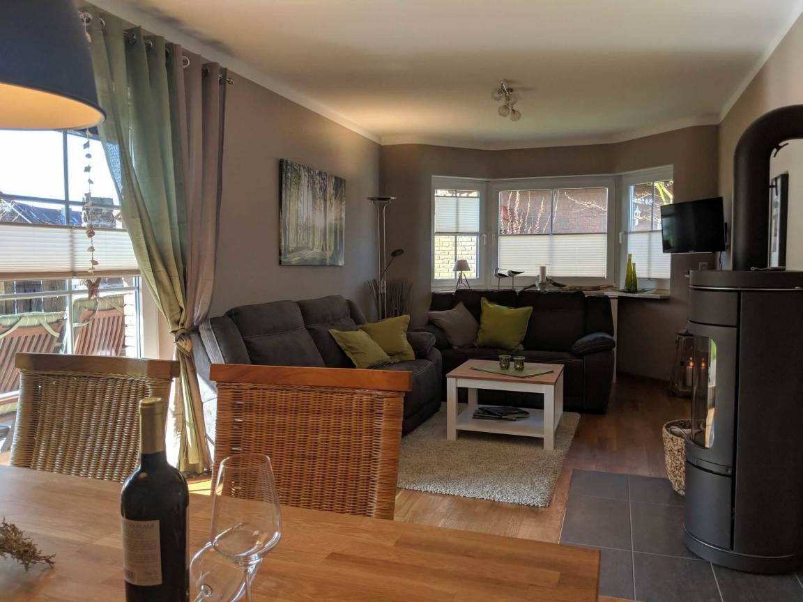 Das stilvolle Ferienhaus Nordseewind verfügt über einen offenen Wohn-/ Essbereich mit angrenzender Terrasse. Die moderne Küche wurde bei der Sanierung 2018 neu eingebaut und ist ausgestattet mit einem großen Kühlschrank, Backofen, Cerankochfeld, Spülmaschine und sämtlichen Küchenkleingeräten. Die direkt an den Wohnraum angrenzende Süd-Terrasse ist sichtgeschützt und kann mit einer Markise überdacht werden, sodass einem gemütlichen Grillabend nichts im Wege steht. Der hauseigene Strandkorb verspricht Nordseefeeling pur und lässt Sie Ihre Auszeit an der Küste optimal genießen. Hunde sind in diesem Ferienhaus herzlich Willkommen.