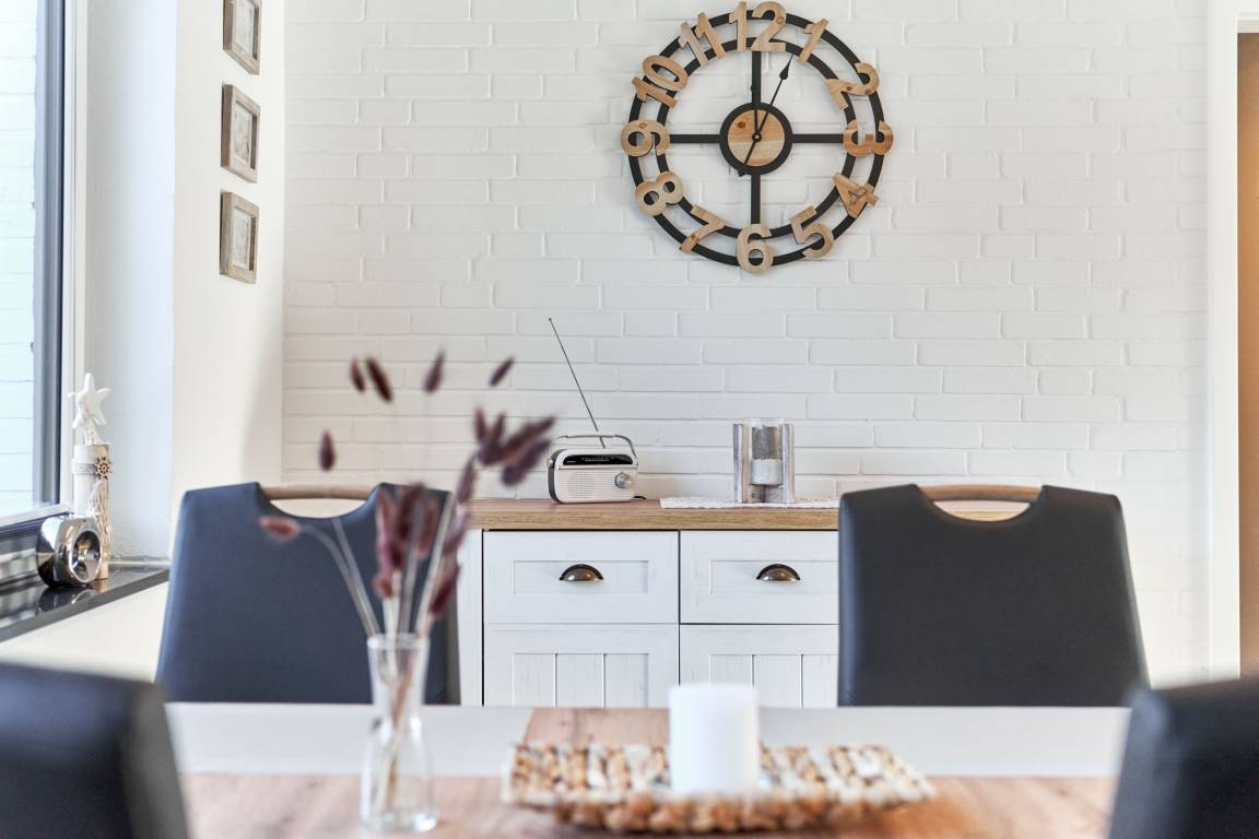 Im Erdgeschoss wartet das Herzstück der Wohnung: die lichtdurchflutete Wohnküche mit großen Terrassentüren zum Garten. Hier kannst du entspannen, lesen, kochen, genießen – oder den Abend bei einem Film auf dem Smart-TV ausklingen lassen. Die voll ausgestattete Küche lädt dazu ein, Lieblingsgerichte mit Urlaubsgefühl zu zaubern.