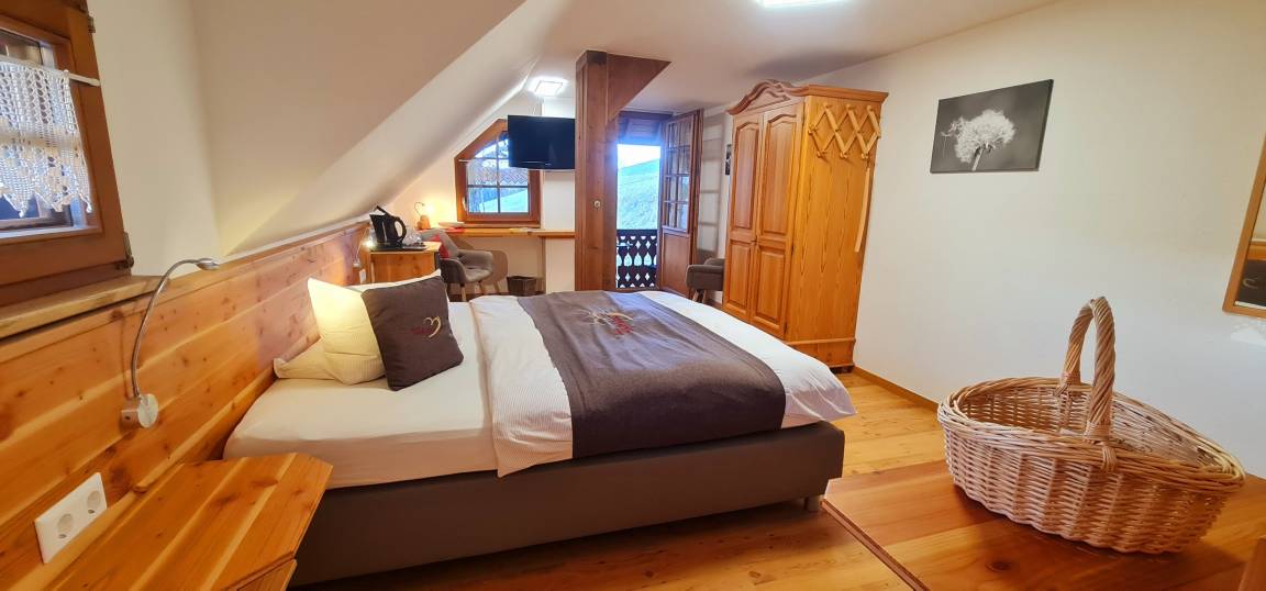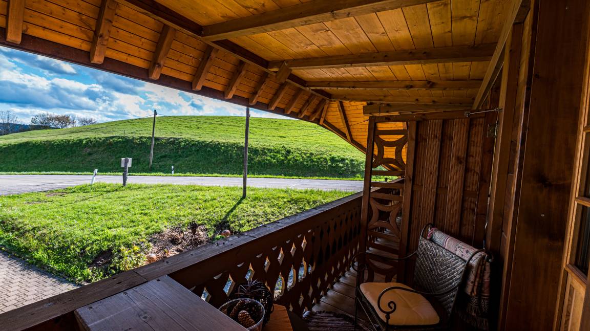 Genießen Sie auf dem möblierter Südbalkon unter unserem erhabenen Walmdach die klare Schwarzwaldluft.