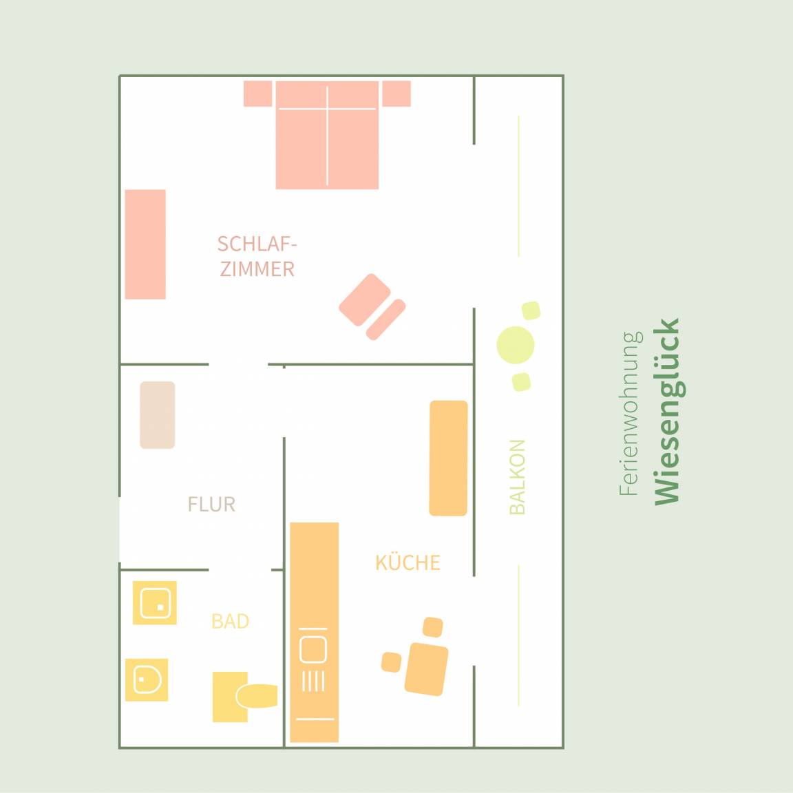 45 m² Ferienwohnung ∙ 1 Schlafzimmer ∙ 2 Gäste