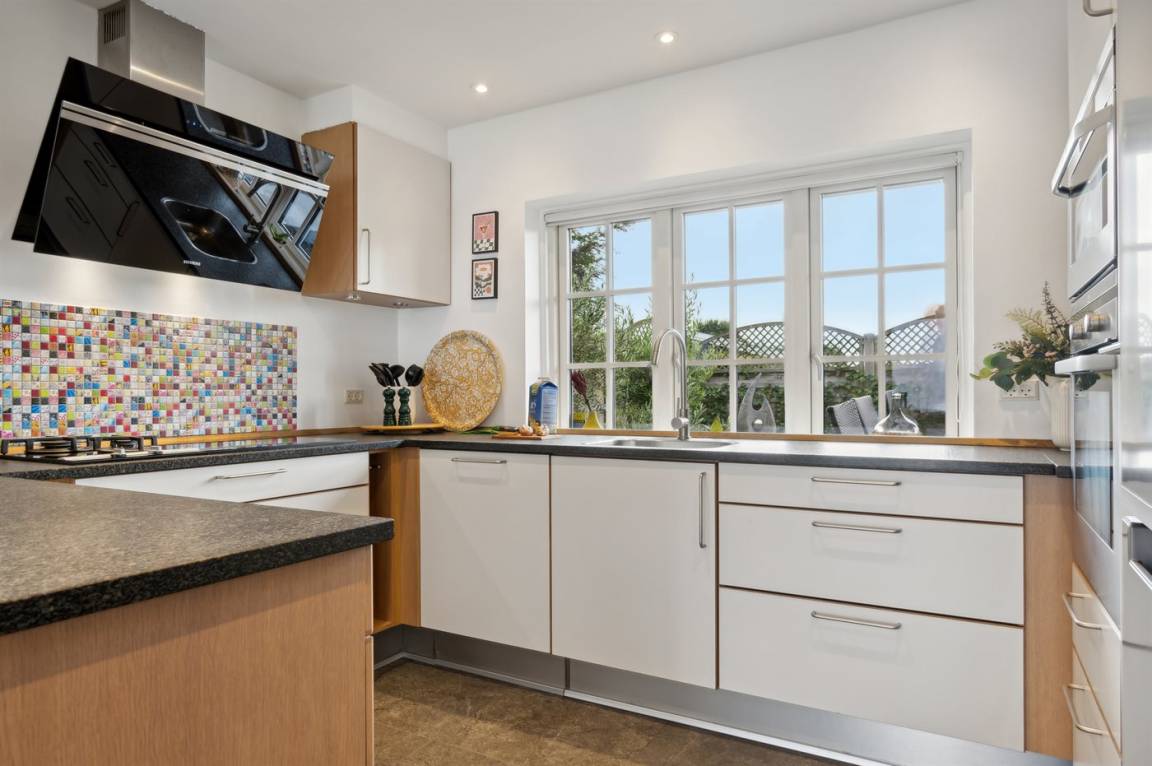 KücheDie Küche ist mit Kühlschrank ausgestattet. Außerdem gibt es 4 Keramik-Kochfelder. Außerdem gibt es ein Gaskochfeld mit 2 Brenner, Umluftofen, Mikrowelle sowie Geschirrspüler. Fußbodenheizung in der Küche.