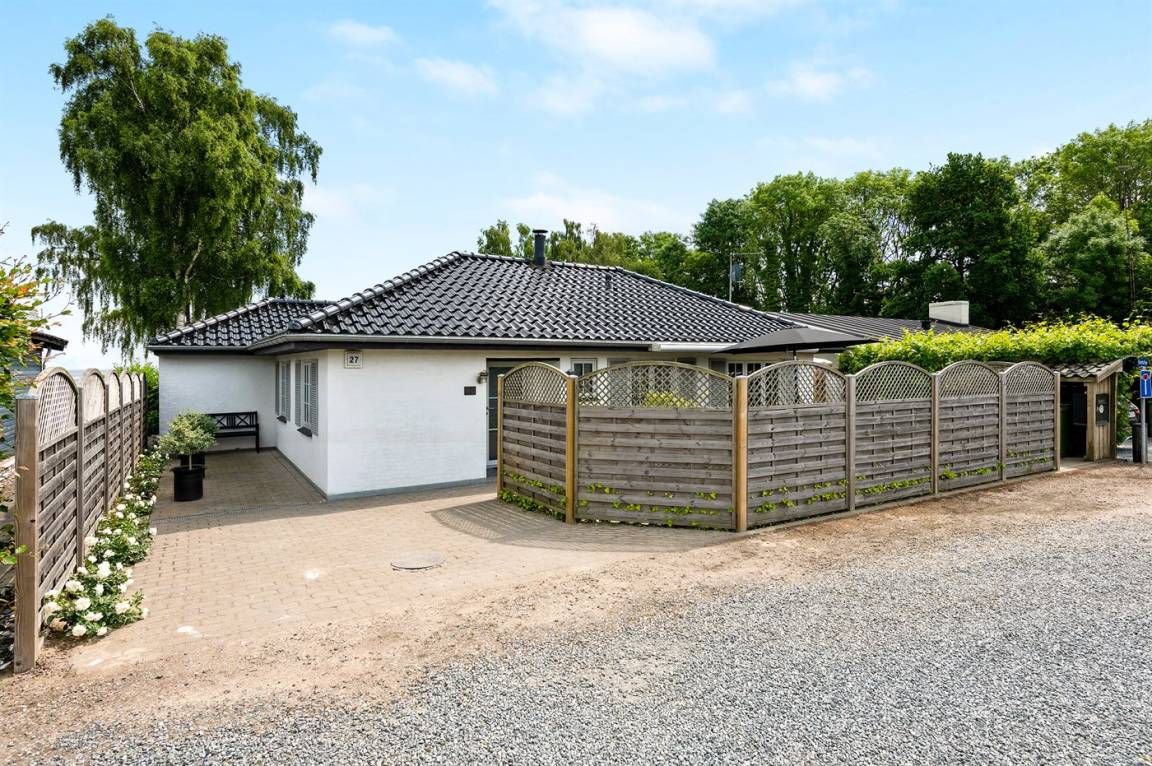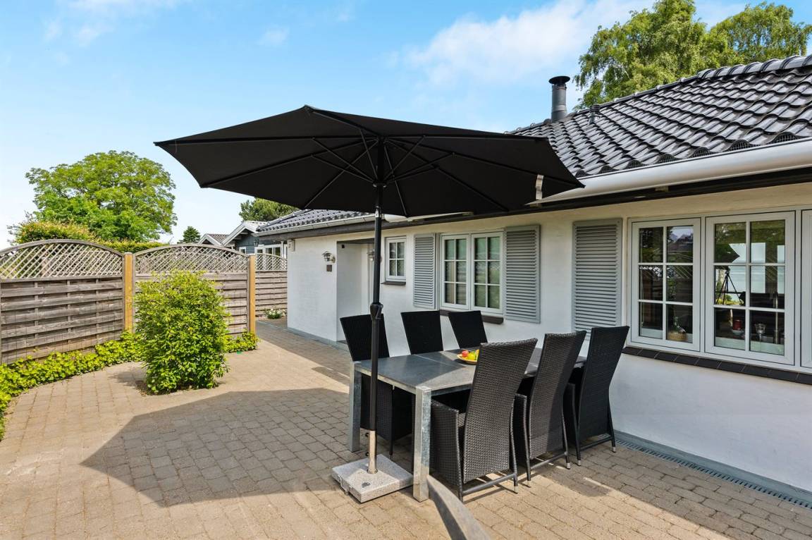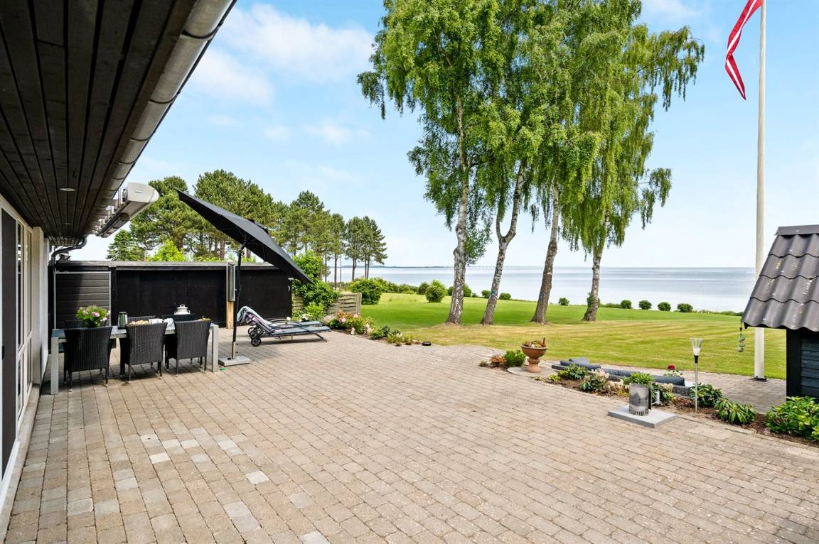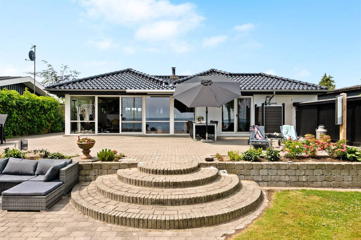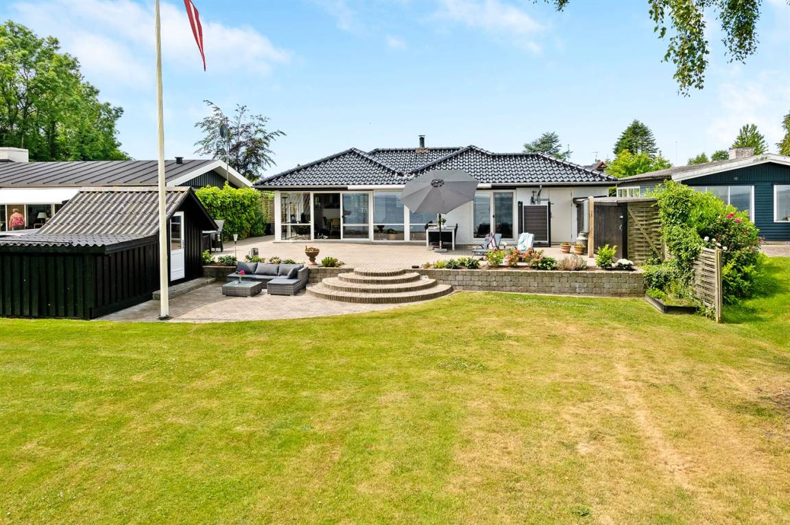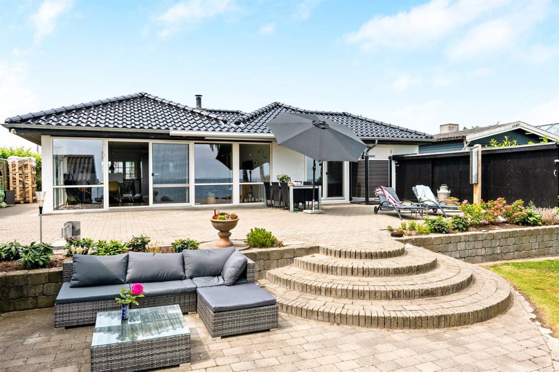 Sehr nahe an einem schönen Badestrand, und mit Meeresblick sowohl vom Haus als auch vom Grundstück, liegt dieses schöne Ferienhaus auf einem großen Gartengrundstück.