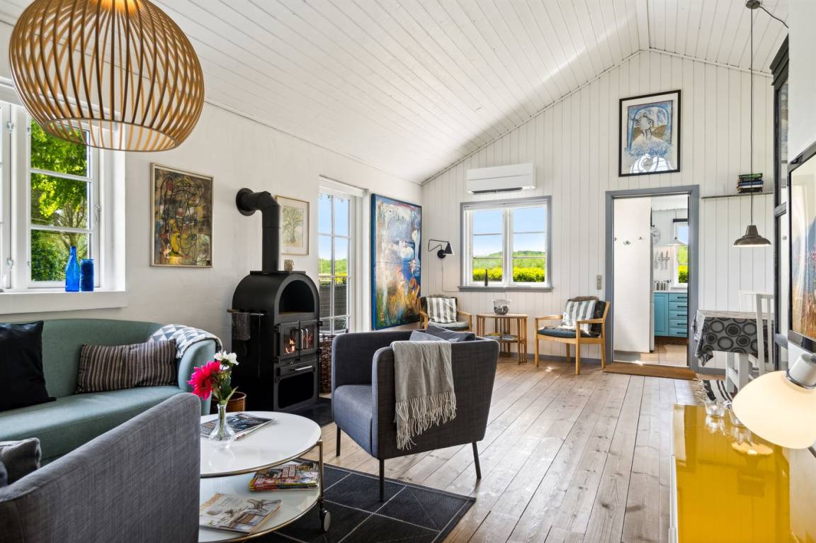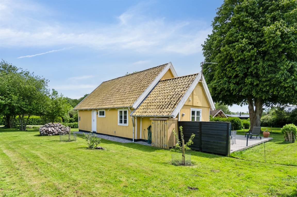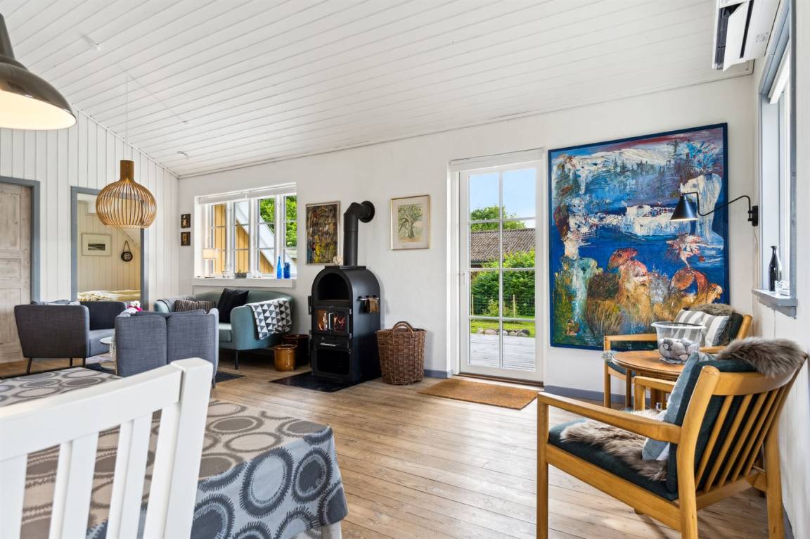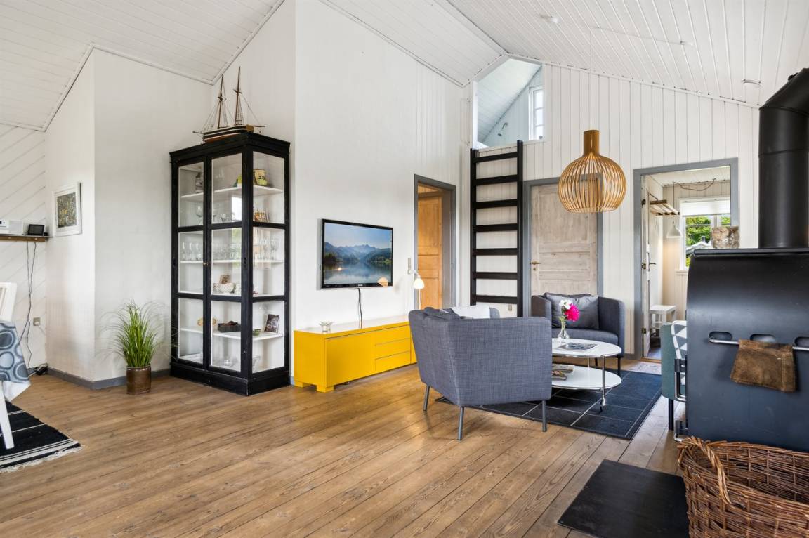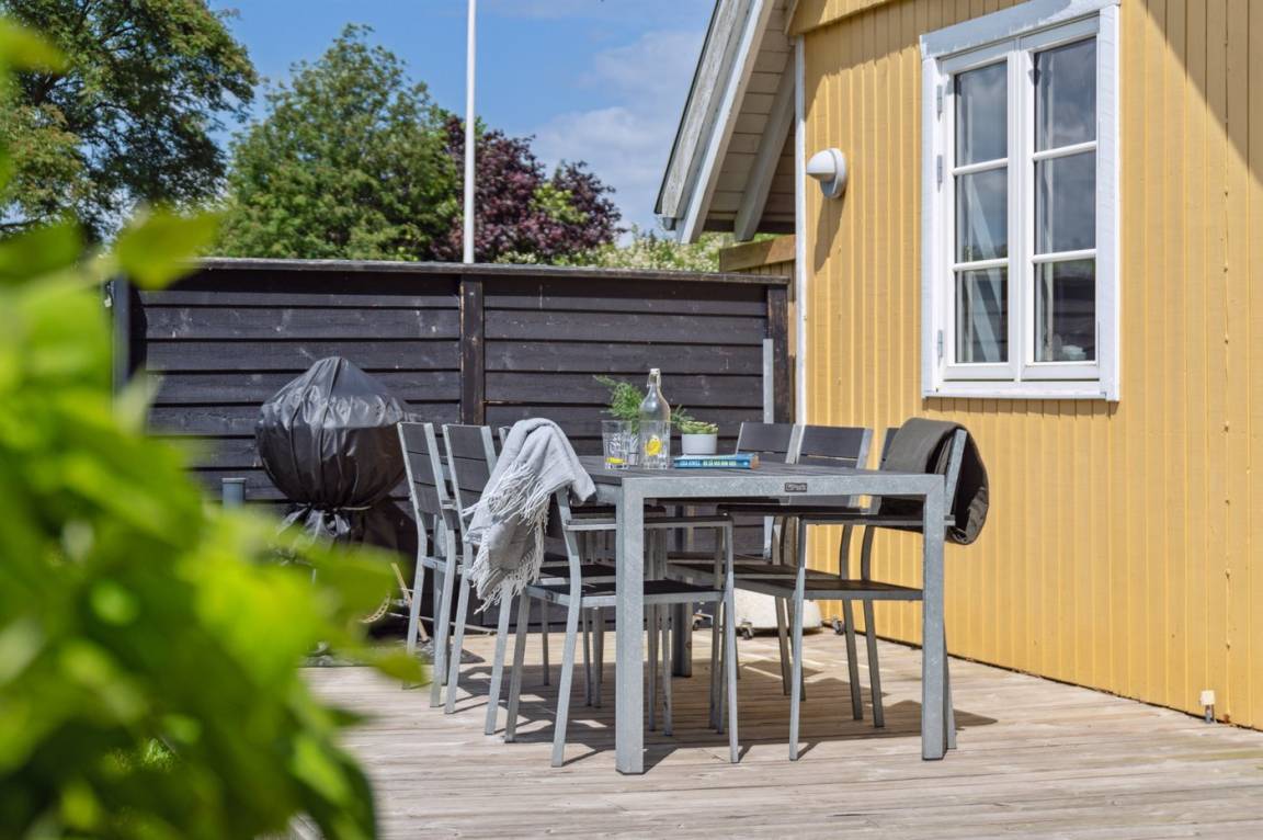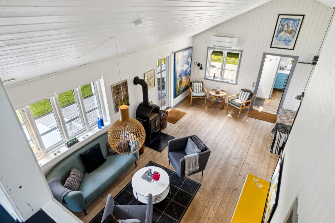 Das Haus ist hell und geschmackvoll eingerichtet, im Außenbereich gibt es einen herrlichen, nach Süden ausgerichteten Terrassenbereich. Das Sommerhaus verfügt über einen großen, offenen Obergeschoss, der als normales Schlafzimmer eingerichtet ist. Aufgrund der Zugangsbedingungen über eine Leiter ist das Obergeschoss bestens für ein paar junge Leute geeignet.