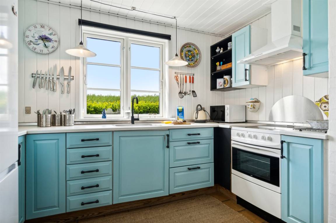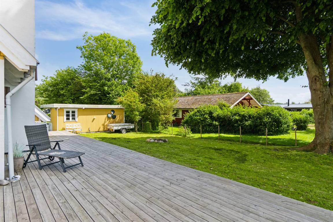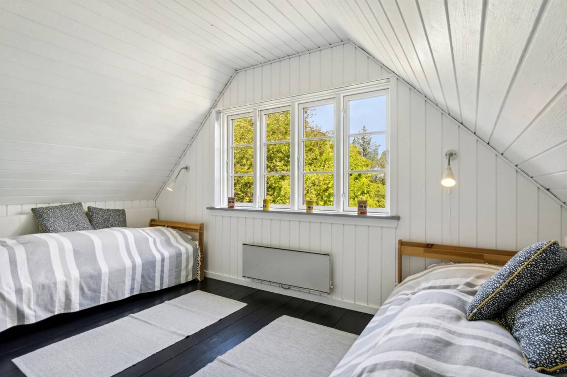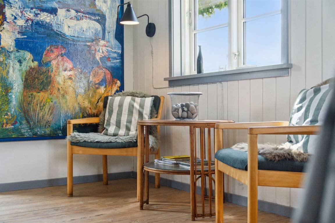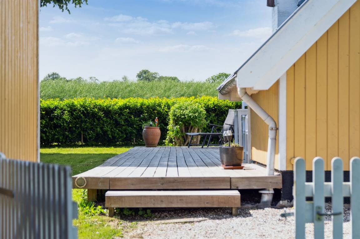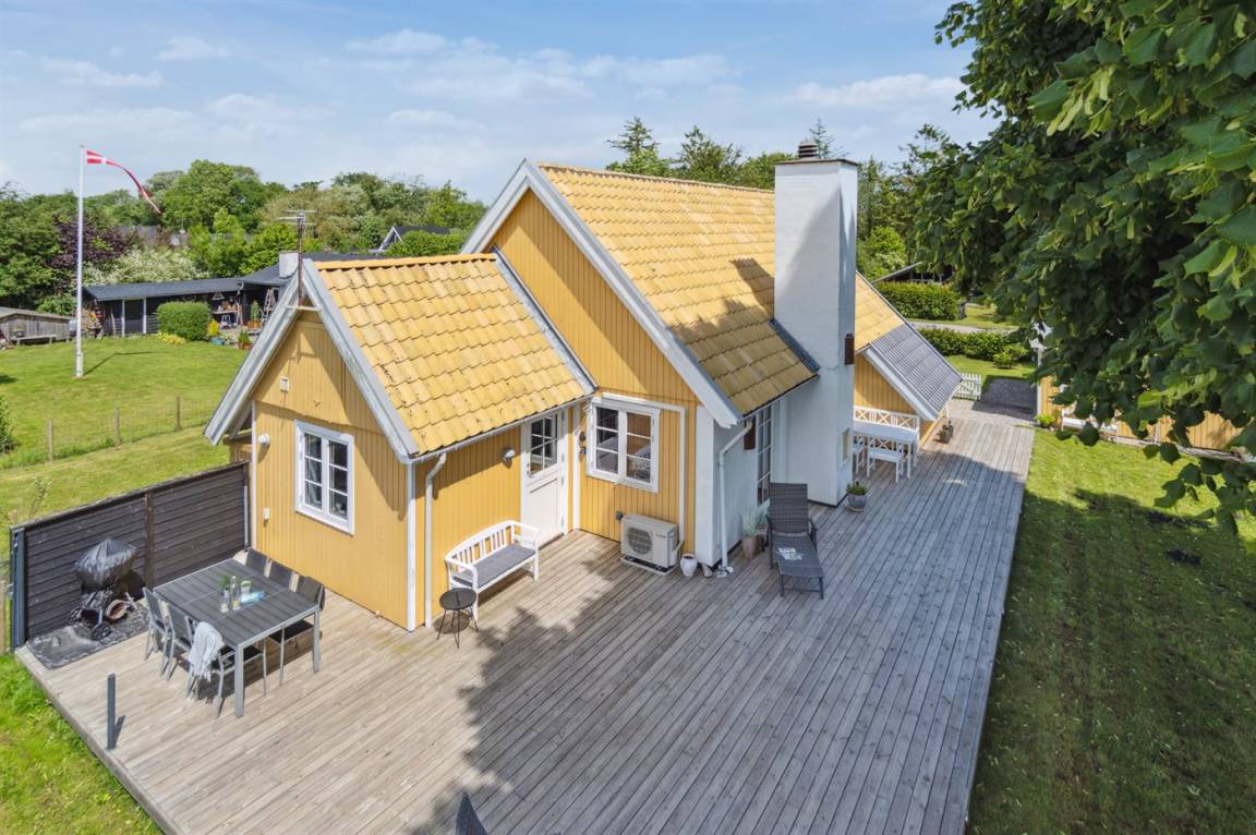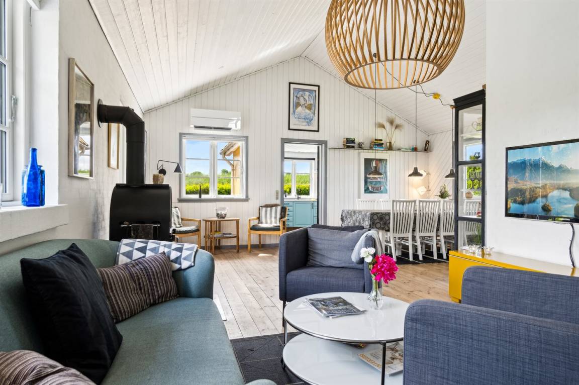 Das Haus ist hell und geschmackvoll eingerichtet, im Außenbereich gibt es einen herrlichen, nach Süden ausgerichteten Terrassenbereich. Das Sommerhaus verfügt über einen großen, offenen Obergeschoss, der als normales Schlafzimmer eingerichtet ist. Aufgrund der Zugangsbedingungen über eine Leiter ist das Obergeschoss bestens für ein paar junge Leute geeignet.