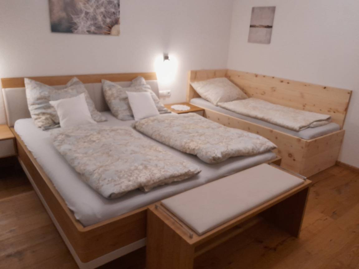 Die Wohnung verfügt über eine geräumige, helle Wohnküche - komfortabel ausgestattet mit einem großen Esstisch, Wohnlandschaft mit SAT-TV und Zugang zur möblierten Terrasse und zum Garten. 2 Schlafzimmer, beide mit SAT-TV ausgestattet mit Doppelbetten und Schlafsofa , Schrank und genügend Platz für ein Kinderbett. Die Räume sind durch Fensterrollos absolut verdunkelbar. Ein Badezimmern mit Dusche, Waschtisch und WC verfügt über ein Fenster und somit haben Sie Tageslicht. Weiters gibt es ein Extra-WC und einen Vorraum mit Garderobe. Im Winter Skischuhtrockner.