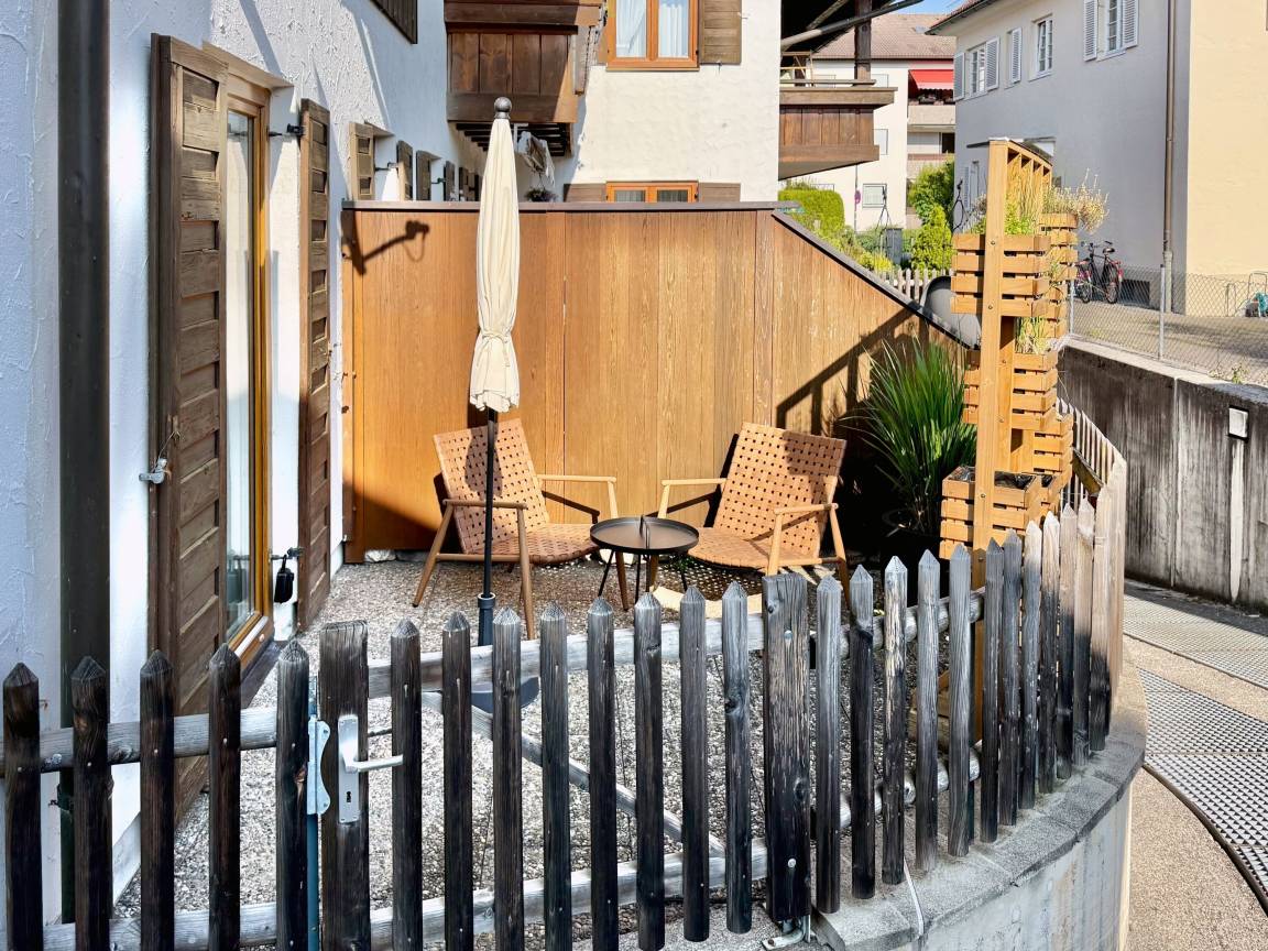 Zur Ausstattung gehören ein modernes Bad, TV-Flachbildschirm, WLAN sowie ein Laptop-Arbeitsplatz. Für die Selbstversorgung stehen Ihnen eine Küche mit Geschirrspüler und sogar eine Waschmaschine zur Verfügung. Ein Parkplatz vor dem Haus sowie Fahrradabstellmöglichkeiten sind ebenfalls vorhanden. Im kleinen Terrassenbereich können Sie die Sonne genießen und teilweise einen Blick auf die Berge erhaschen.