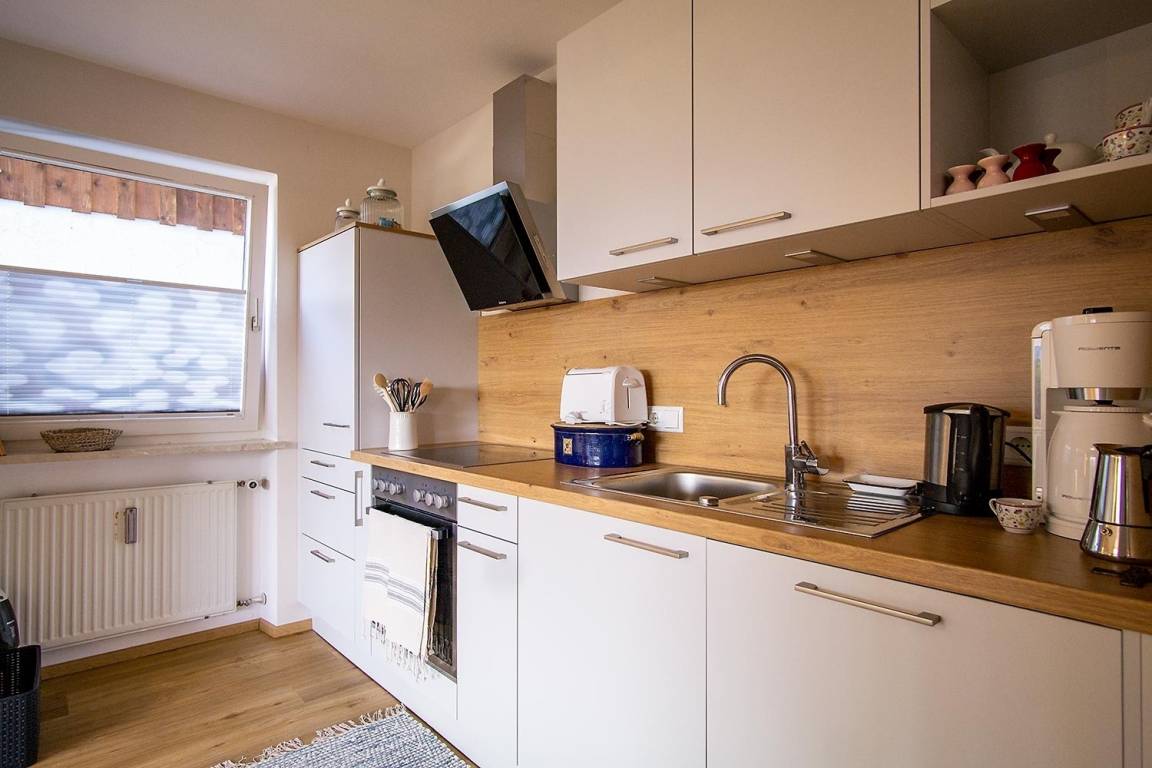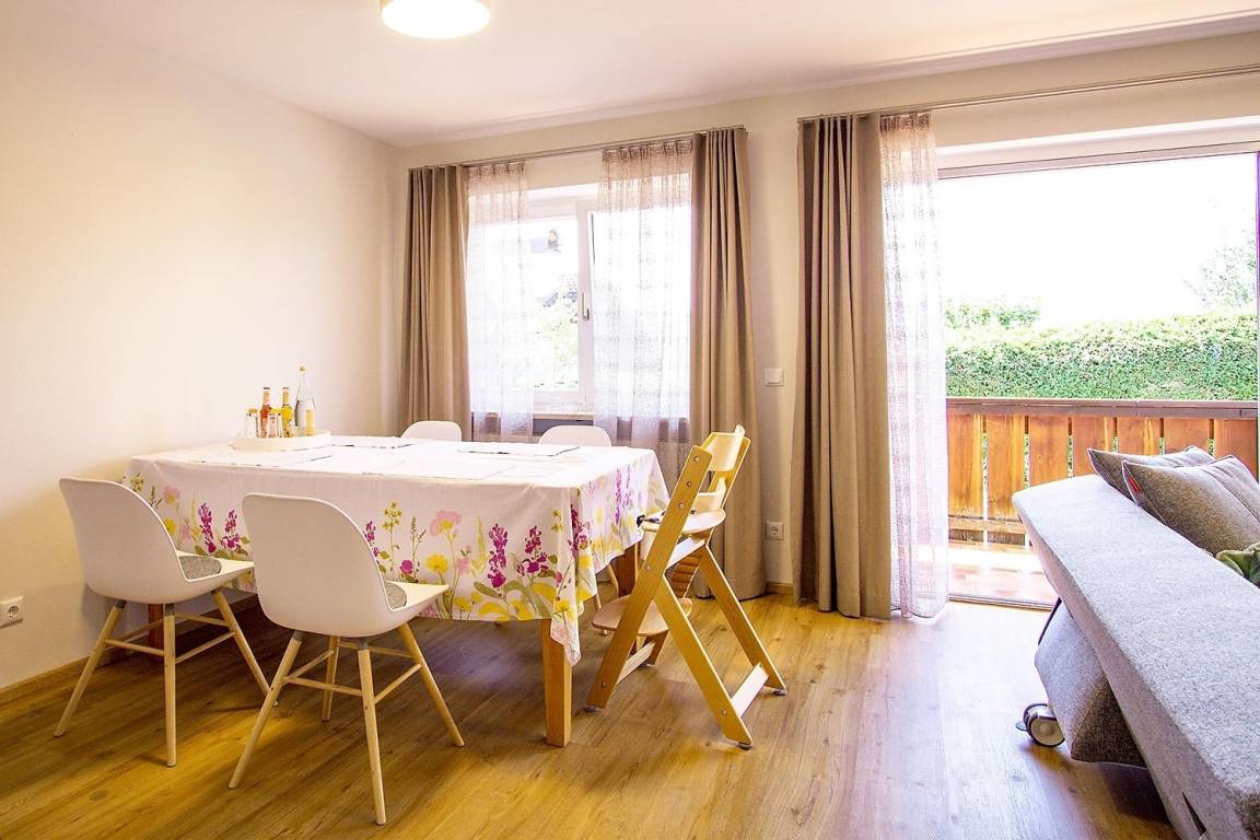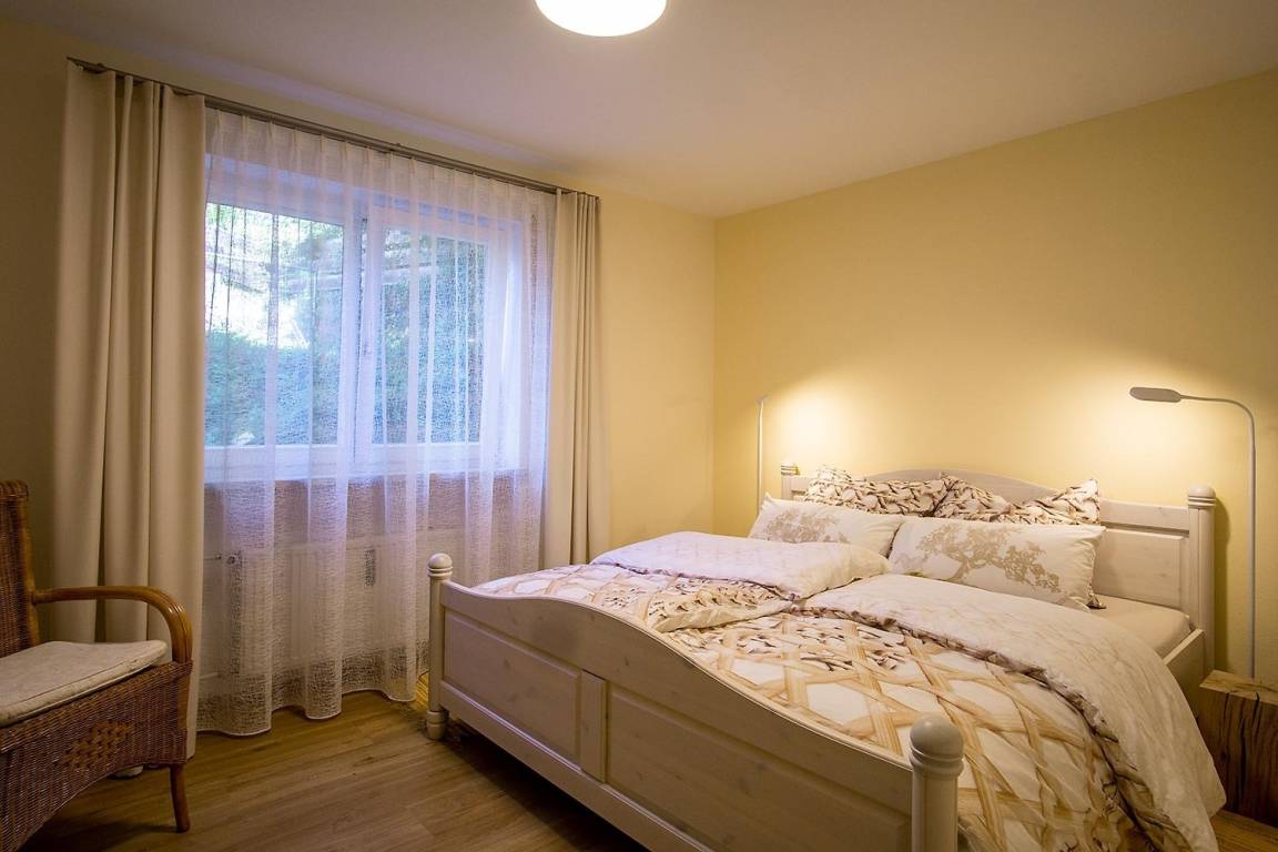 Sie verfügt über ein separates Schlafzimmer, ein freundliches Tageslicht Bad mit begehbarer Dusche, einer Handtuchheizung und einem großem Waschbecken. Zusätzlich gibt es ein separates WC, eine voll ausgestattete Küche mit Spülmaschine, Ceran Kochfeld, Backofen, Dunstabzug und Kühlschrank mit Gefrierfach. Im Wohn-Essbereich befindet sich ein großzügiges Schlafsofa für ein bis zwei Personen, Kabel TV, WLAN, und der Zugang zum Südbalkon mit herrlicher Bergsicht. Neben dem Haus ist eine Garage als Abstellplatz für zum Beispiel Fahrräder oder einen Kinderwagen, zusätzlich ist hier die Mülltonne und ein Mülltrennungssystem für umweltbewusstes Wohnen. Eine Waschmaschine im Keller kann mitbenutzt werden.
