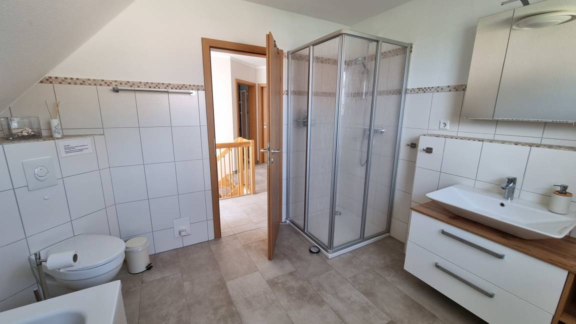 Im EG befinden sich noch ein Abstellraum mit Waschmaschine (Bügelbrett und Bügeleisen vorhanden) und das mit einer Dusche ausgestattete Bad.