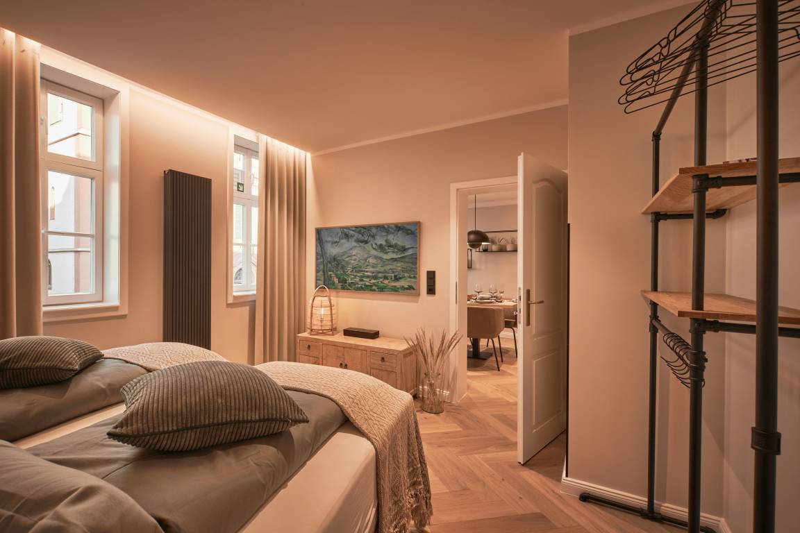 Bei der Einrichtung wurde viel Wert auf die Abstimmung von Farben und Materialien gelegt, um Ihren Fulda Aufenthalt im Loft 1540 mit einer ganz besonderen Wohlfühlatmosphäre unvergesslich zu machen.