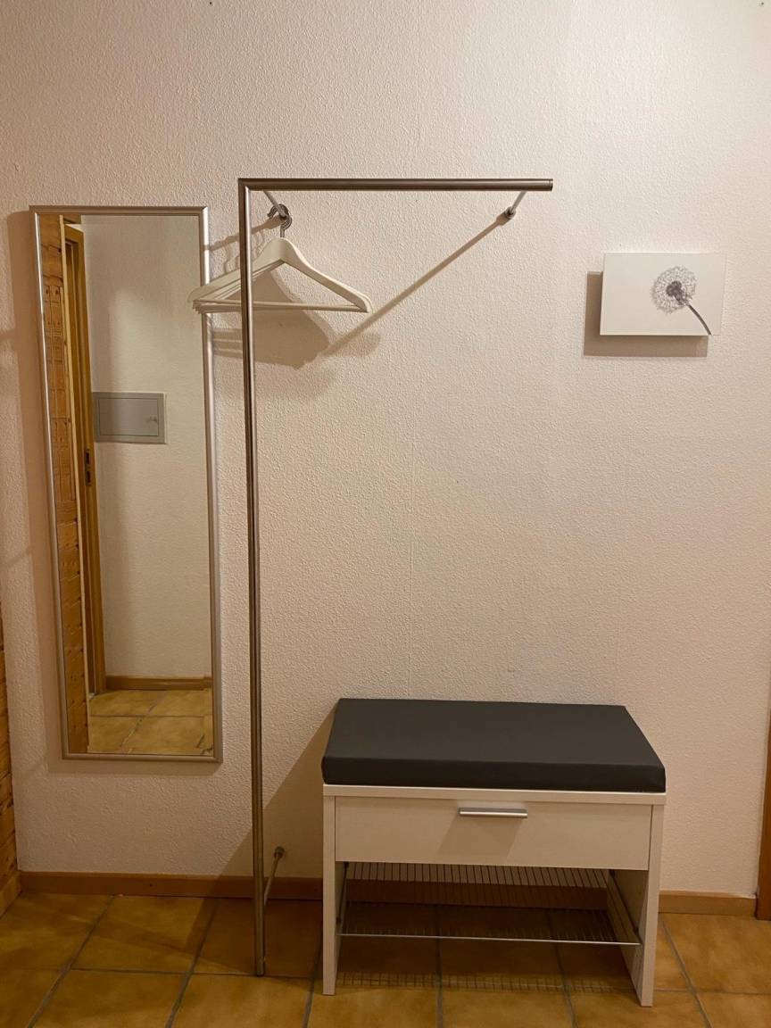 Falls es einmal wärmer wird, steht in der Unterkunft auch ein Ventilator zur Verfügung; Wäsche kann auf einem kleinen Wäscheständer auf dem Balkon getrocknet werden.