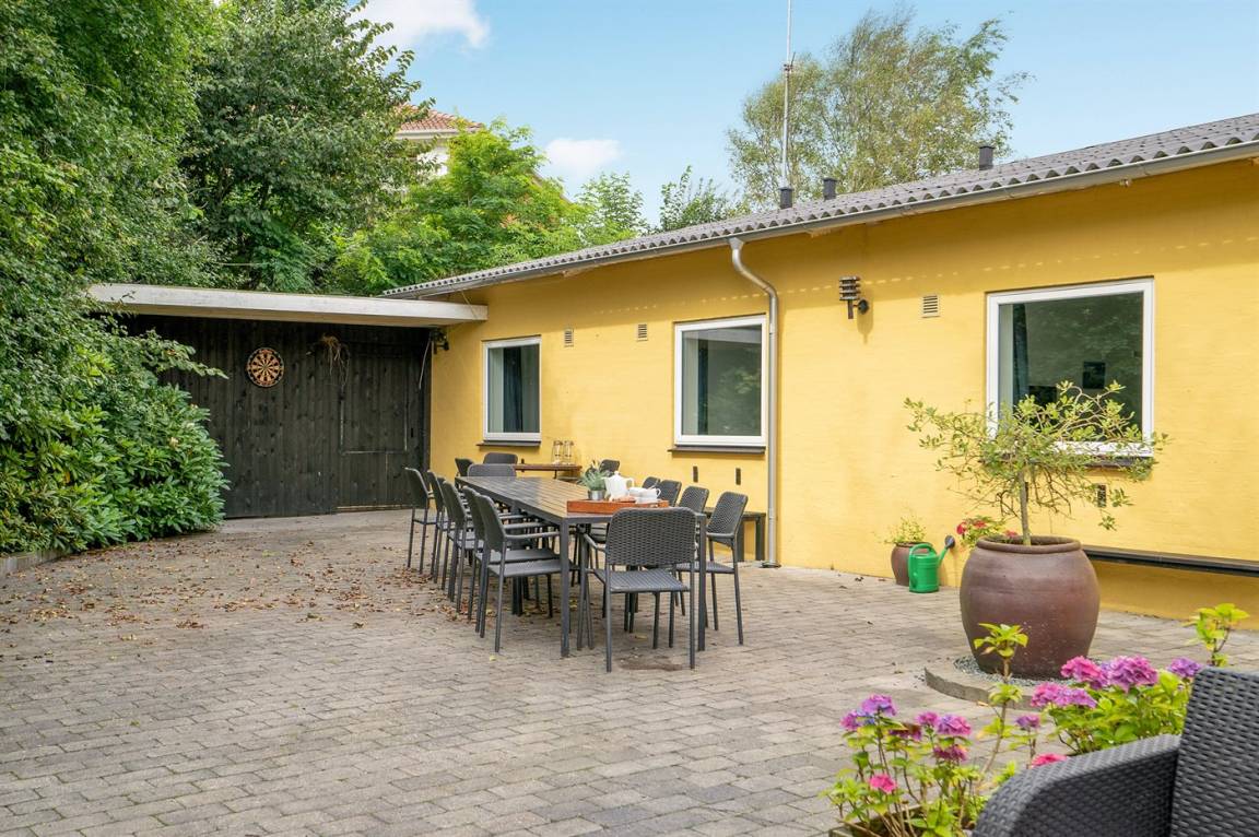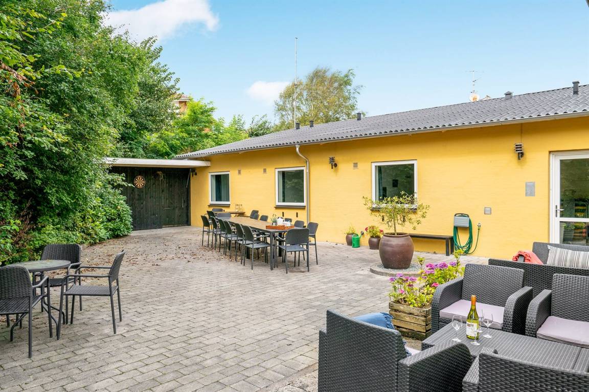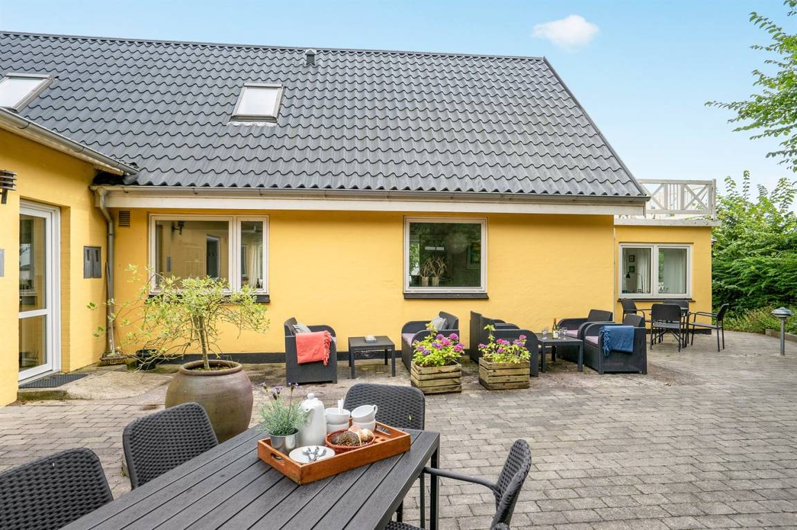 Das Ferienhaus bietet 20 Schlafplätze plus 2 Kinderbetten an. Die Wohnfläche von 512 m² erstreckt sich über 2 Etagen und das Haus wurde 1920 erbaut und 2005 renoviert. Es ist erlaubt, 2 Haustiere mitzubringen. Die Unterkunft verfügt über eine Waschmaschine und einen Wäschetrockner. Es gibt 2 Kinderhochstühle. Das Ferienhaus liegt auf einem 3000 m² großen Garten-/Strandgrundstück, das von einer Straße zwischen dem Haus und dem Grundstück aufgeteilt ist. Der Fjord liegt 50 m entfernt. Direkter Zugang zur 80 m² großen Sonnenterrasse. Balkon. Es gibt einen Geräteraum. Parkplatz am Ferienhaus. Am Wasser gibt es eine große Lagerfeuerstelle.
