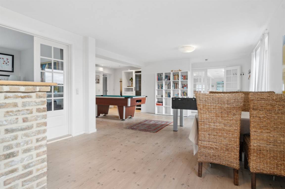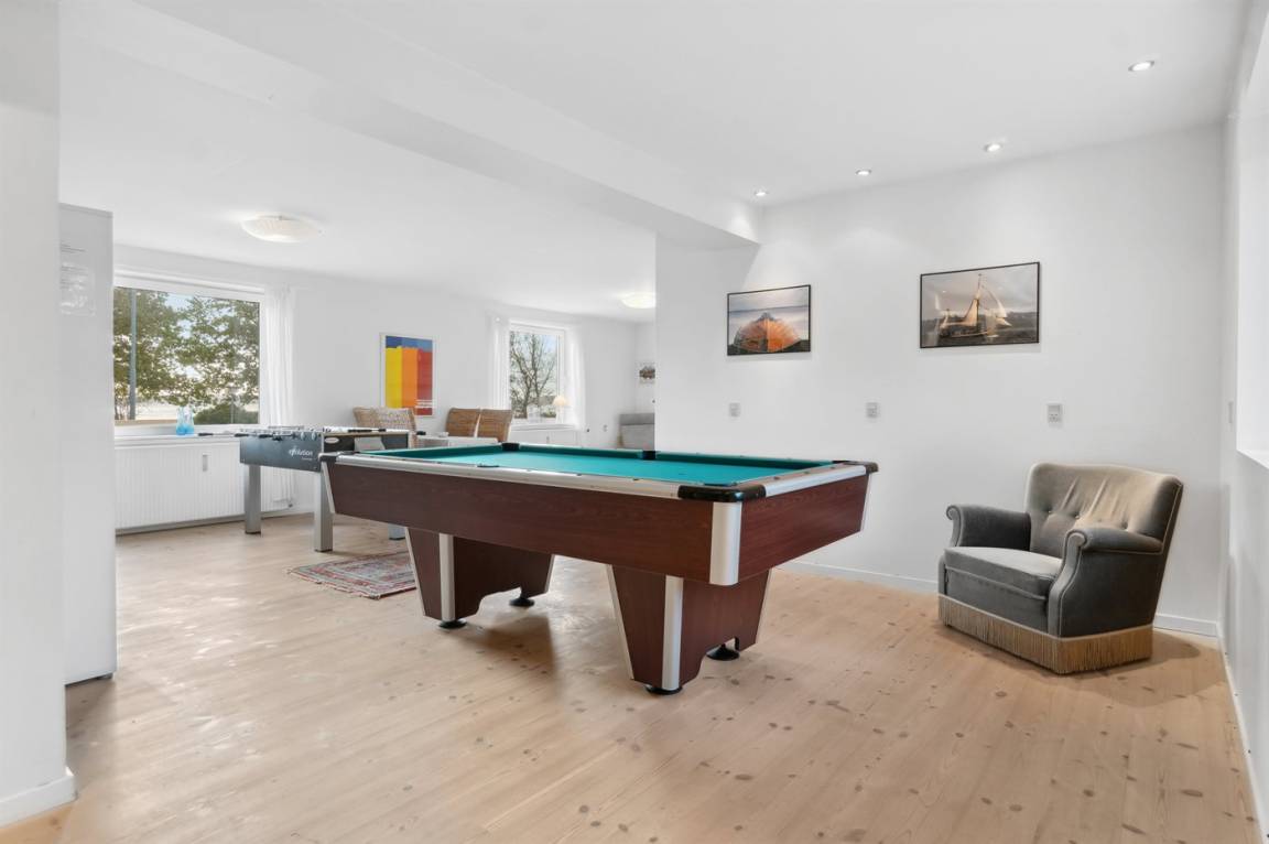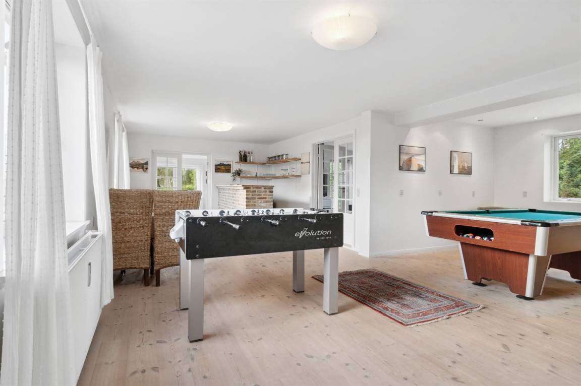 Im Ferienhaus gibt es einen Fernsehraum sowie 8 Fernseher, die sich auf die Zimmer verteilen. Es gibt mindestens 4 dänische Kanäle, 1-3 schwedische Kanäle, 1-3 norwegische Kanäle und mindestens 4 deutsche Kanäle. WLAN ist verfügbar. Poolbillard und Tischfußball stehen zur Verfügung.