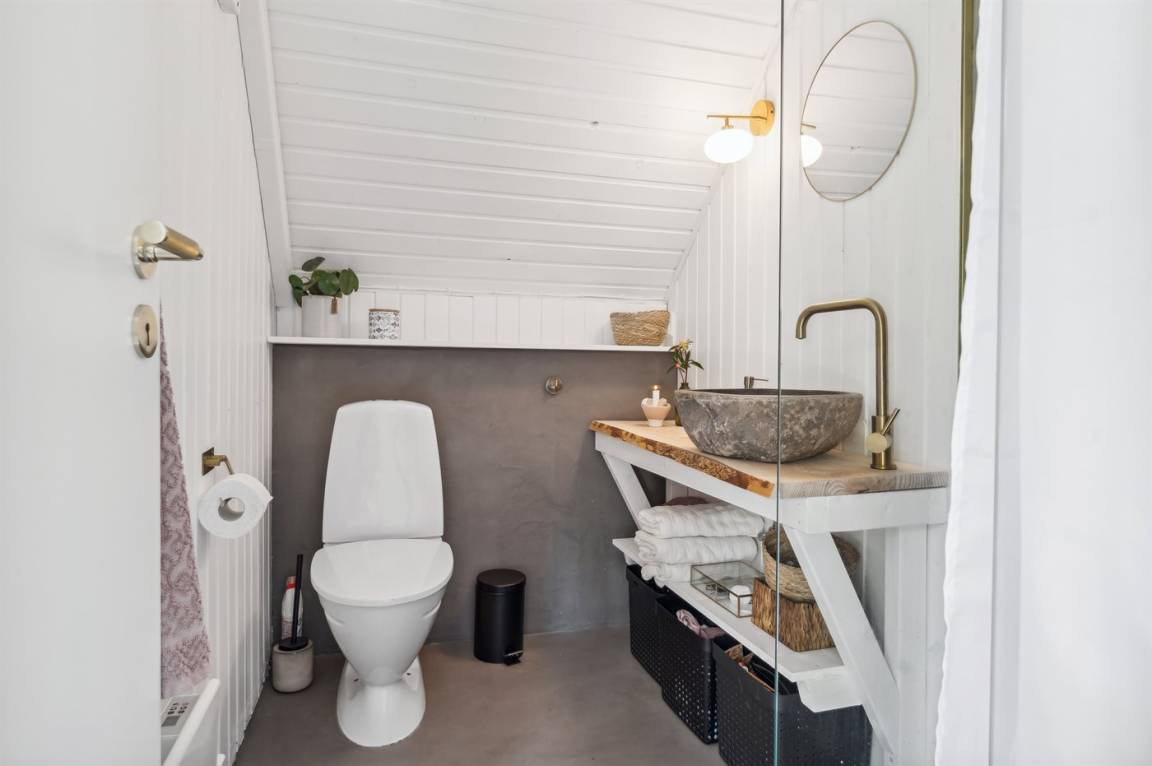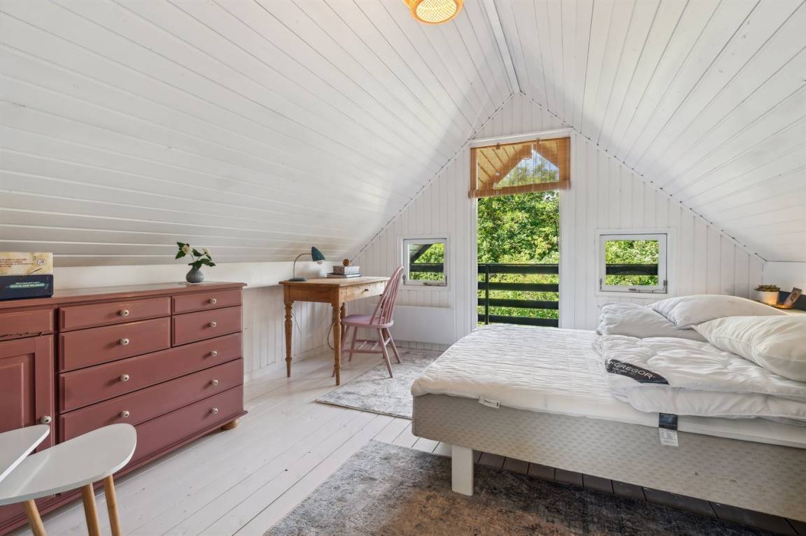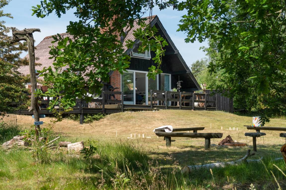 DraußenDie Ferienunterkunft liegt auf einem 2850 m² großen Naturgrundstück. Die Entfernung zum Fjord beträgt 300 m. Die nächste Einkaufsmöglichkeit liegt 4000 m entfernt. In einem Abstand von 18000 m gibt es einen Golfplatz. Es steht ein offenes Terrassenareal zur Verfügung. Außerdem gibt es überdachte Terrasse.Balkon im Obergeschoss. Die Entfernung zu einem Spielplatz beträgt 4000 m.Lagerfeuerstelle. Weber-Gasgrill steht zur Verfügung. Parkplatz auf dem Grundstück.