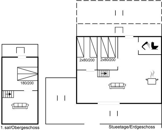 SchlafverhältnisseDie Schlafplätze verteilen sich auf 3 Schlafräume. 2 Schlafplätze in einem Doppelbett. 4 Schlafplätze in Einzelbetten.