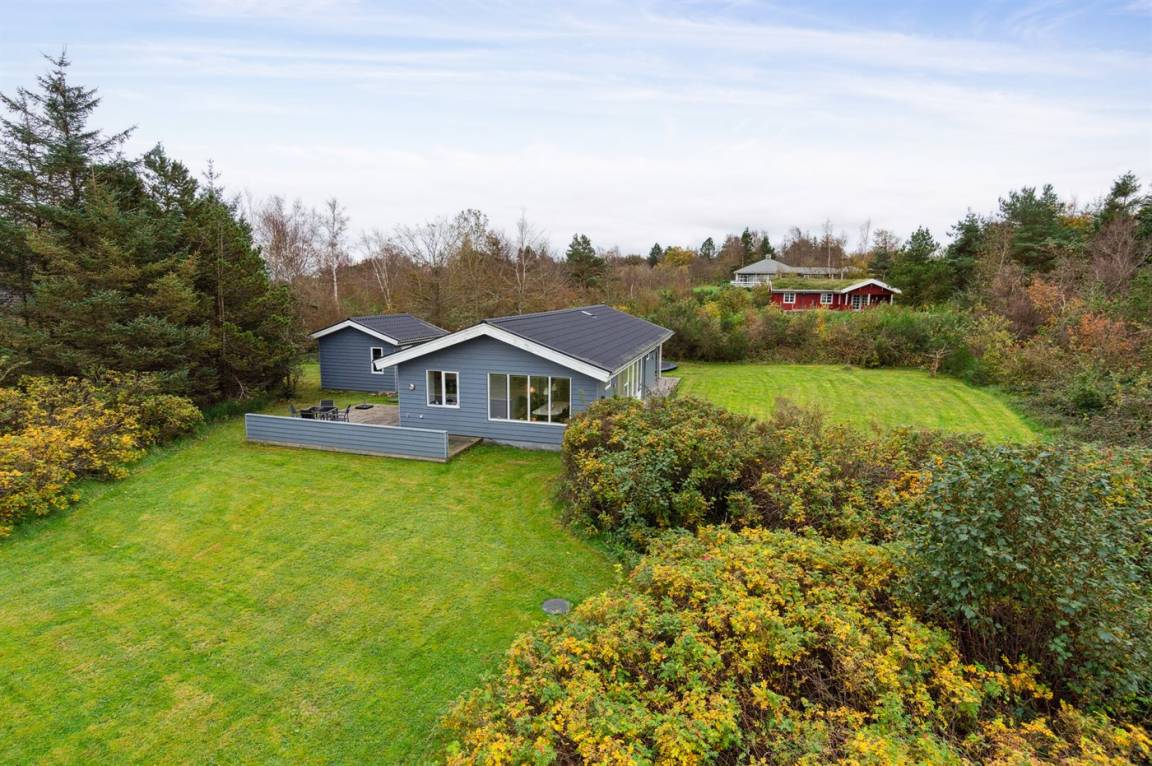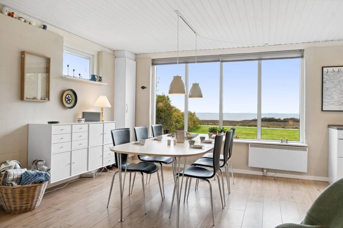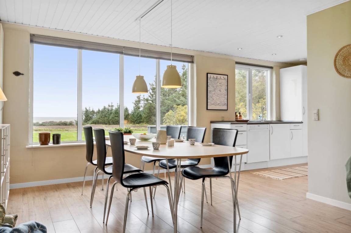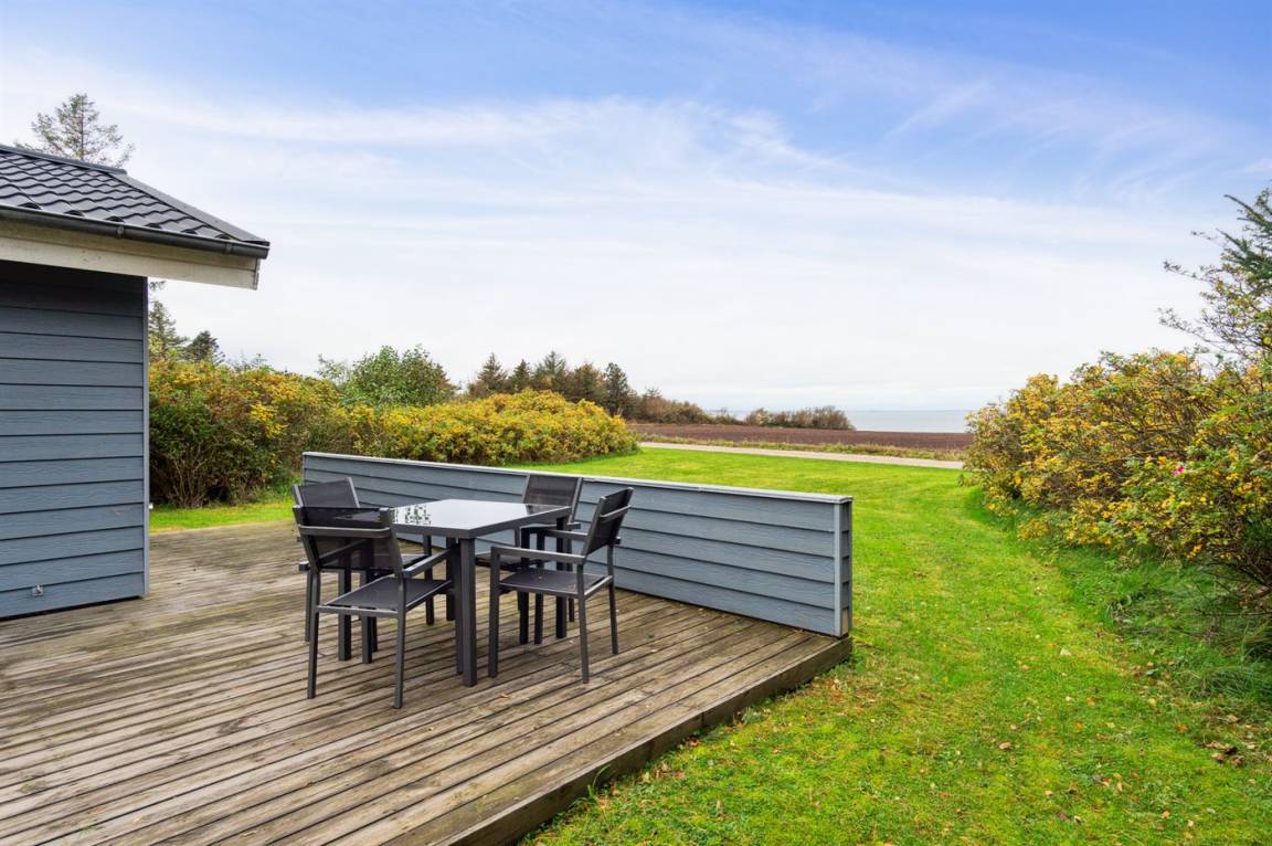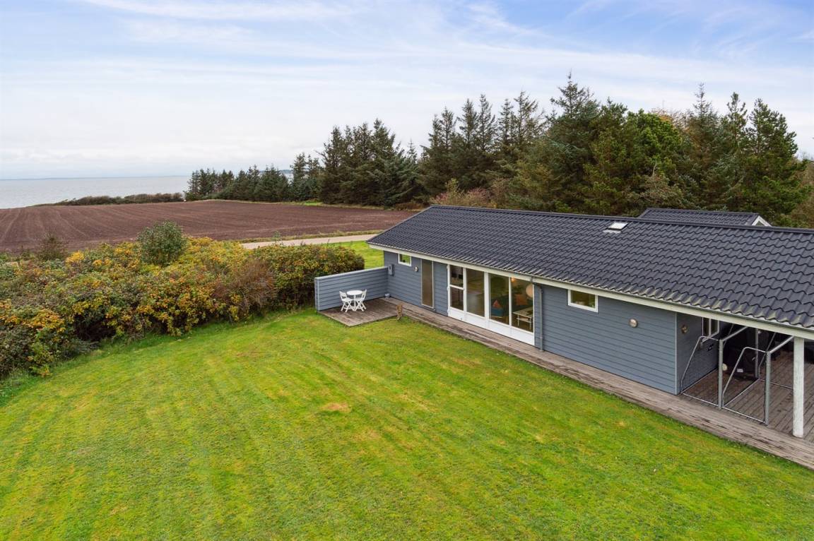 Schönes, lichtdurchflutetes Sommerhaus auf der Insel Fur mit einem herrlichen Blick auf Felder und Wasser, dazu gehört ein großes Grundstück mit mehreren Terrassen und reichlich Gelegenheit für Outdoor-Aktivitäten. Hier könnt ihr die malerische Landschaft von Fur erleben und das Café- und Hafenleben genießen.
