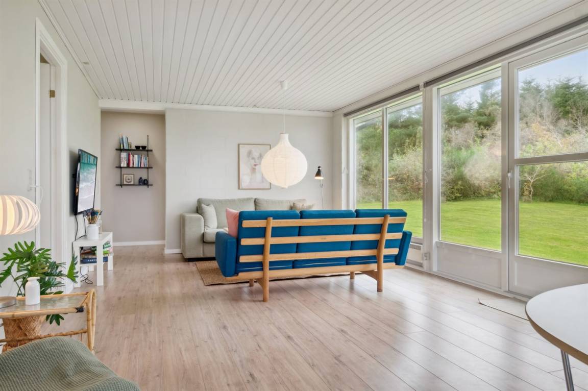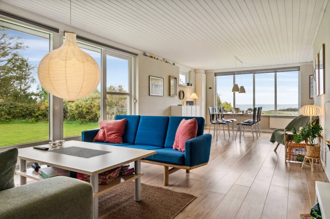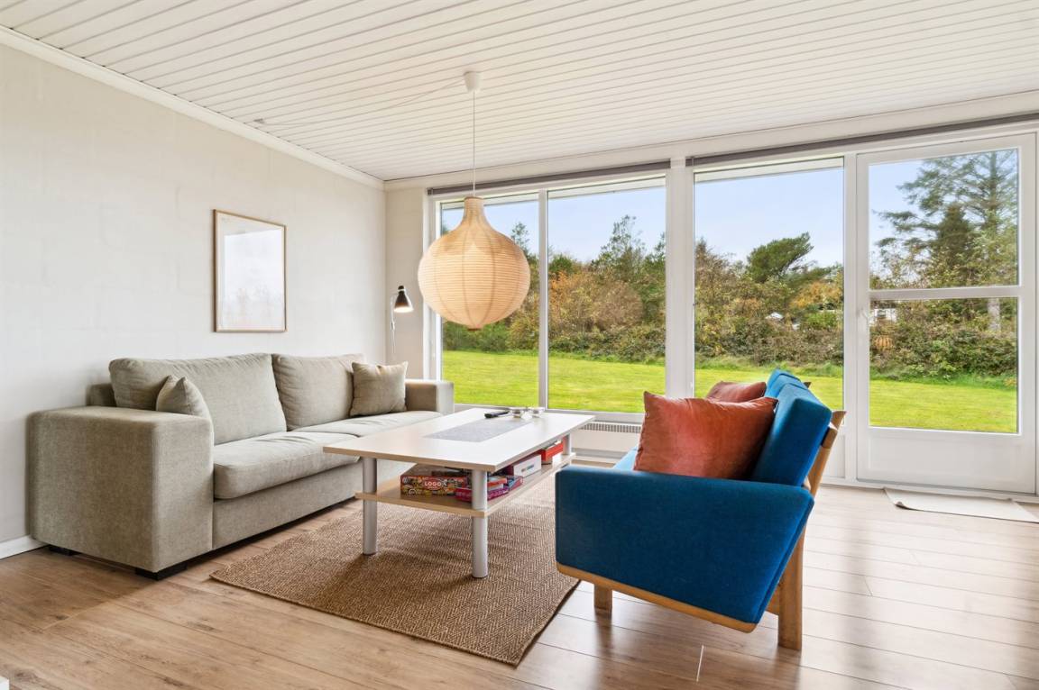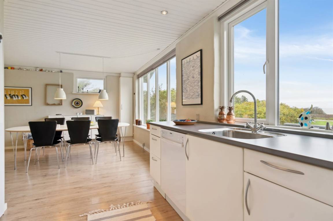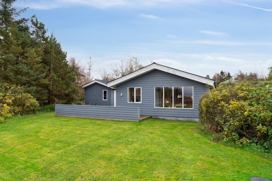 Schönes, lichtdurchflutetes Sommerhaus auf der Insel Fur mit einem herrlichen Blick auf Felder und Wasser, dazu gehört ein großes Grundstück mit mehreren Terrassen und reichlich Gelegenheit für Outdoor-Aktivitäten. Hier könnt ihr die malerische Landschaft von Fur erleben und das Café- und Hafenleben genießen.