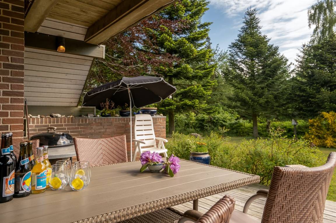 „The vacation at the holiday home: Velbeliggende sommerhus med en skøn have. Alting i orden indendørs, alt hvad man behøvede. Veludstyret køkken.“