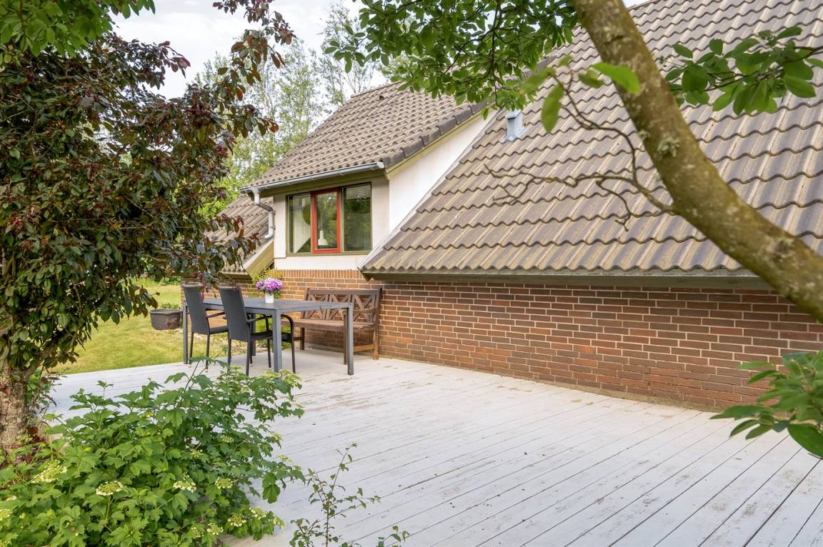 DraußenDie Ferienunterkunft liegt auf einem 3000 m² großen Gartengrundstück. Die Entfernung zum Fjord beträgt 200 m. Die nächste Einkaufsmöglichkeit liegt 3000 m entfernt. Es steht ein 70 m² Terrassenareal zur Verfügung. Außerdem gibt es 12 m² überdachte Terrasse. Geräteraum. Schaukel. Sandkasten. Parkplatz auf dem Grundstück.