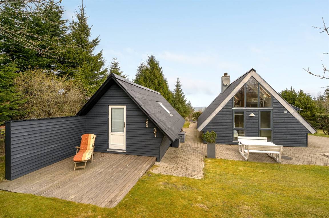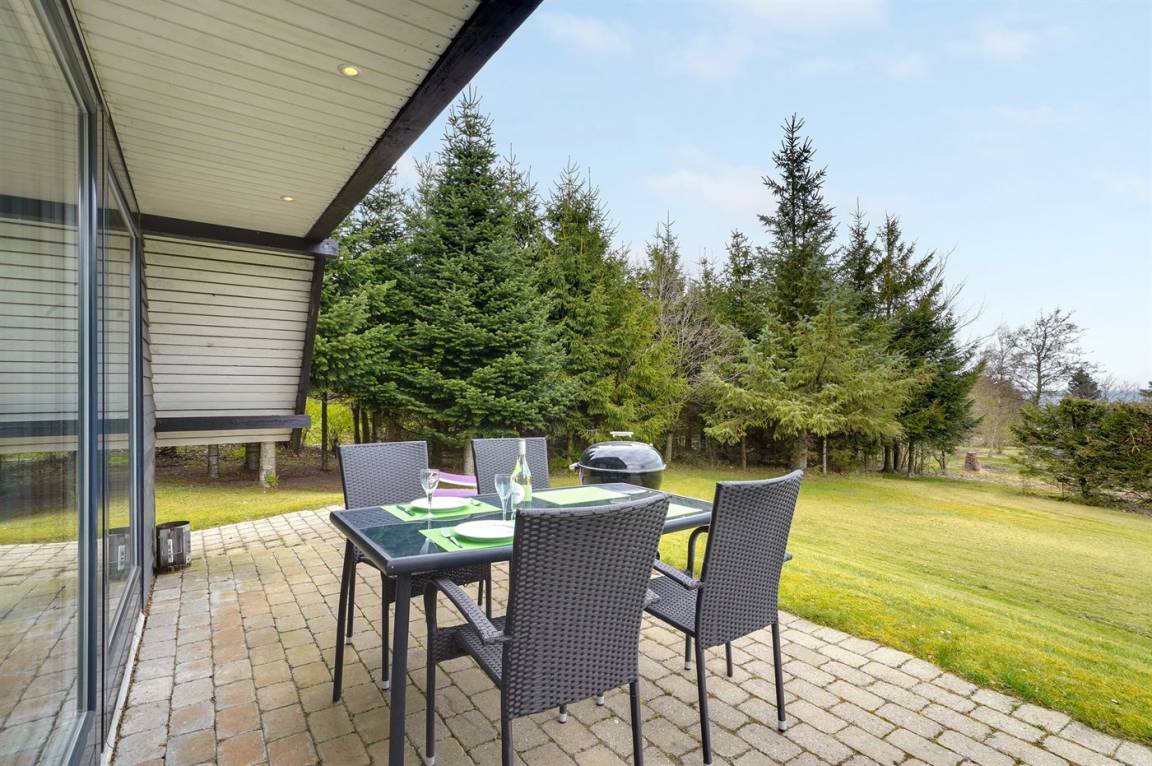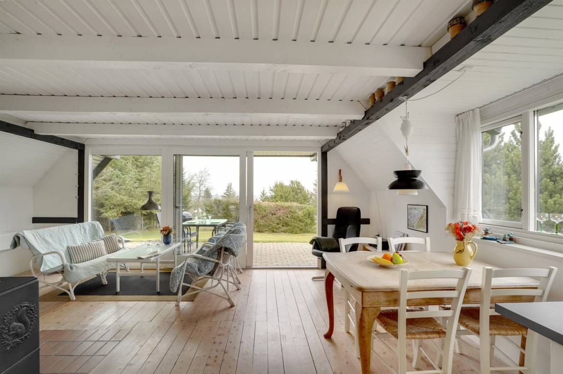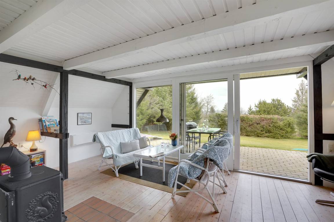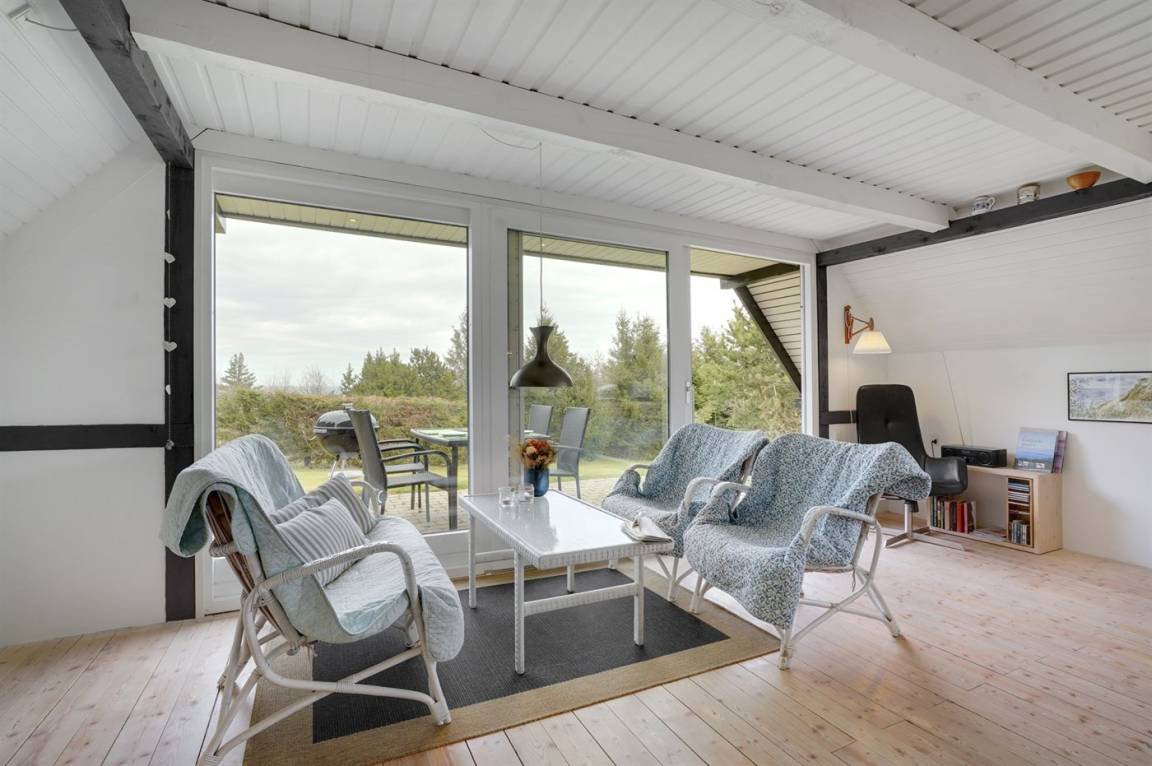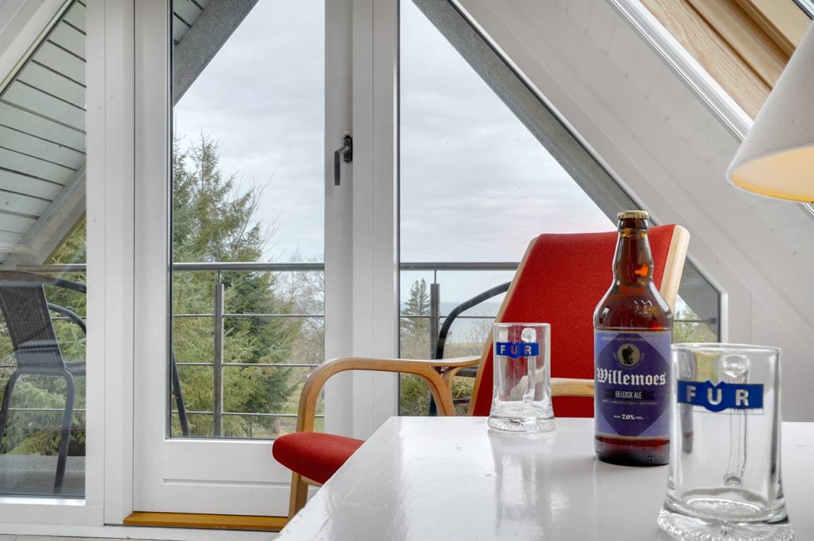 Schönes Ferienhaus mit fantastischem Fjordblick und einem sehr großen Grundstück in einer ruhigen, malerischen Gegend auf der schönen Insel Fur im Limfjord. Zu dem Haus gehört ein Gästehaus, in dem sich 2 der Schlafplätze befinden.