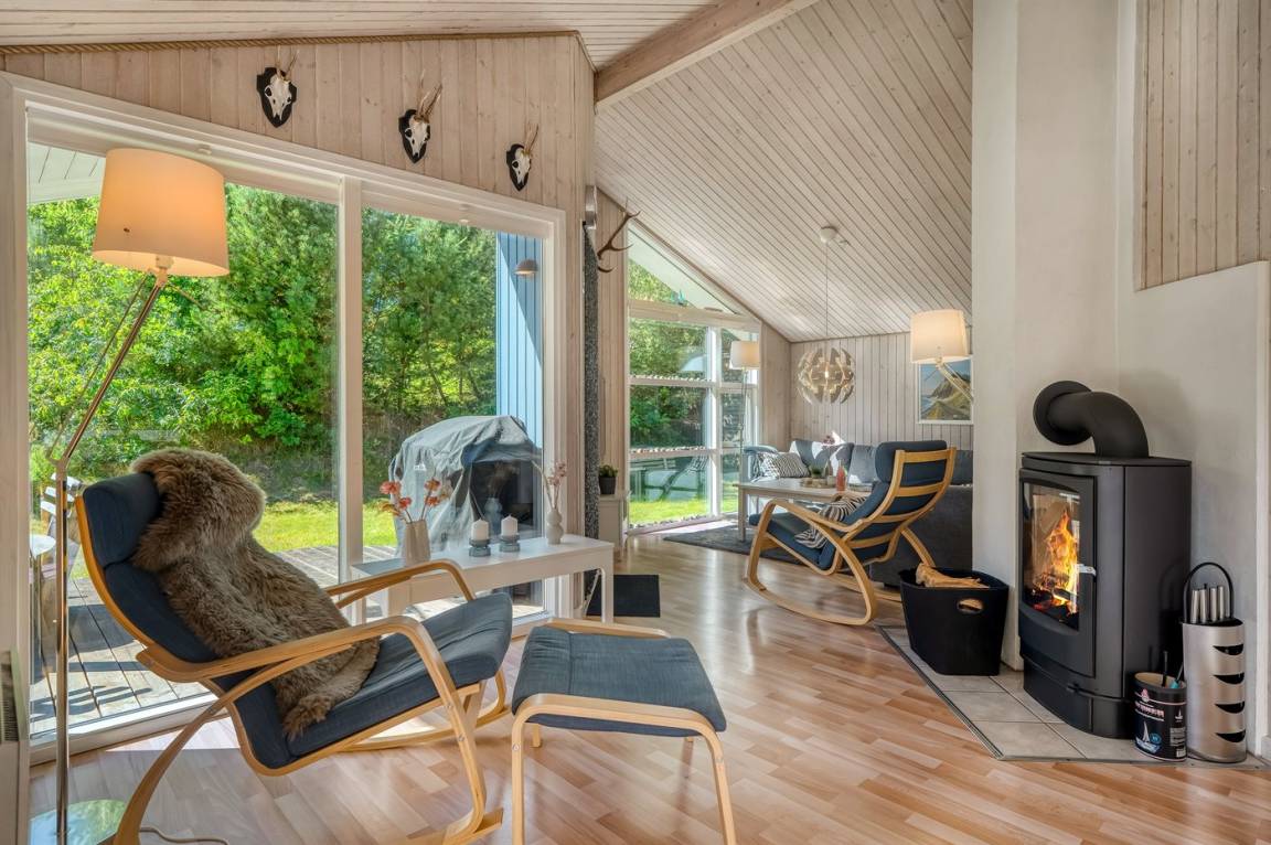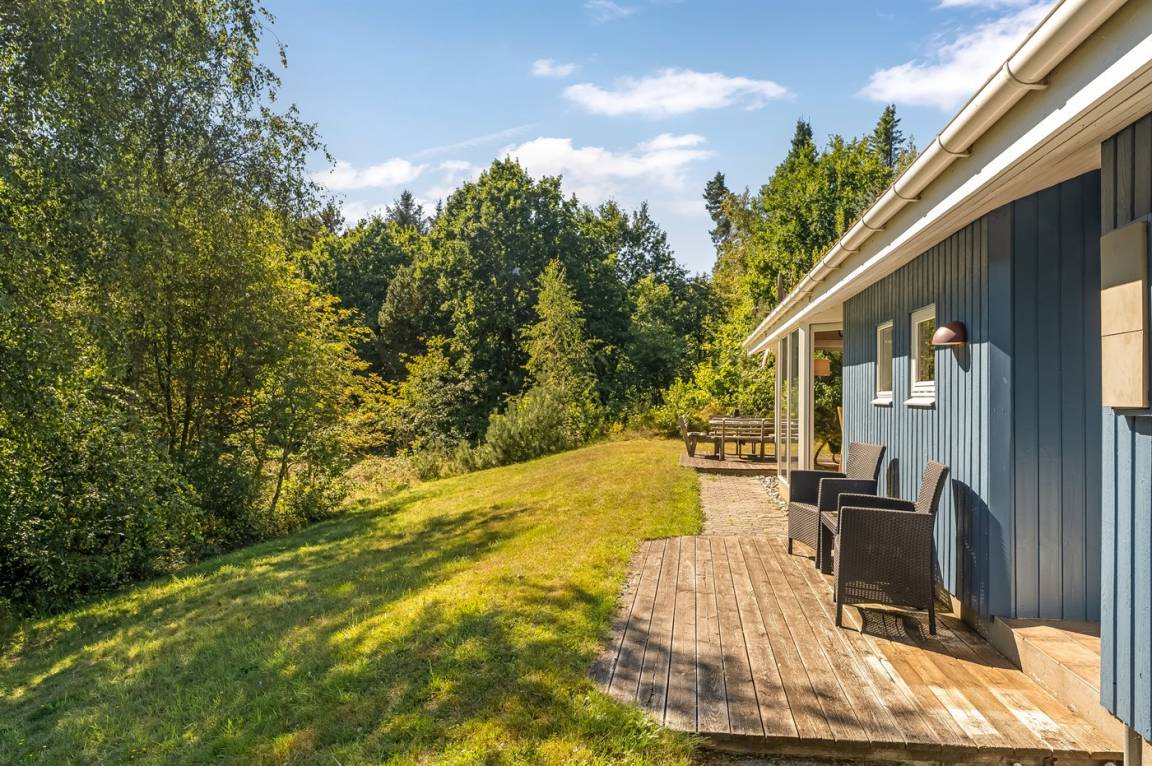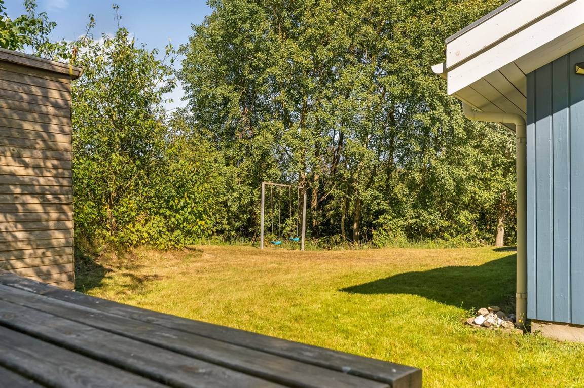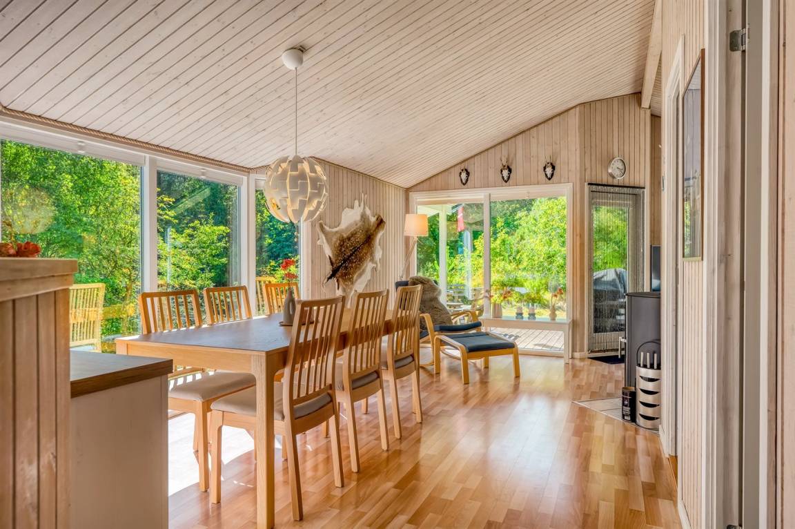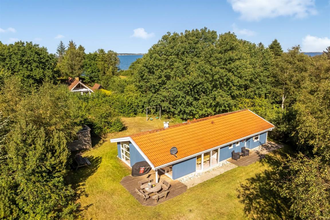 DraußenDie Ferienunterkunft liegt auf einem 2912 m² großen Gründstück, das in einem Wald/Plantage liegt. Die Entfernung zum Fjord beträgt 150 m. Es gibt einen Badesteg in der Nähe. Die nächste Einkaufsmöglichkeit liegt 5000 m entfernt. Es steht ein offenes Terrassenareal zur Verfügung. Außerdem gibt es überdachte Terrasse. Schaukel. Es steht ein Grill zur Verfügung. Parkplatz auf dem Grundstück.