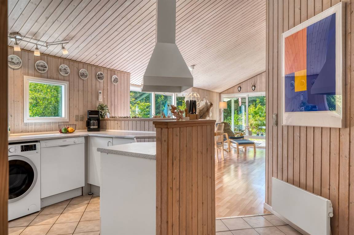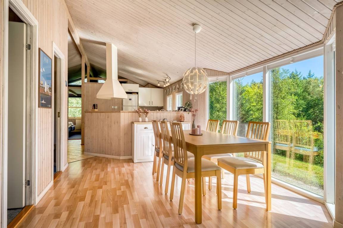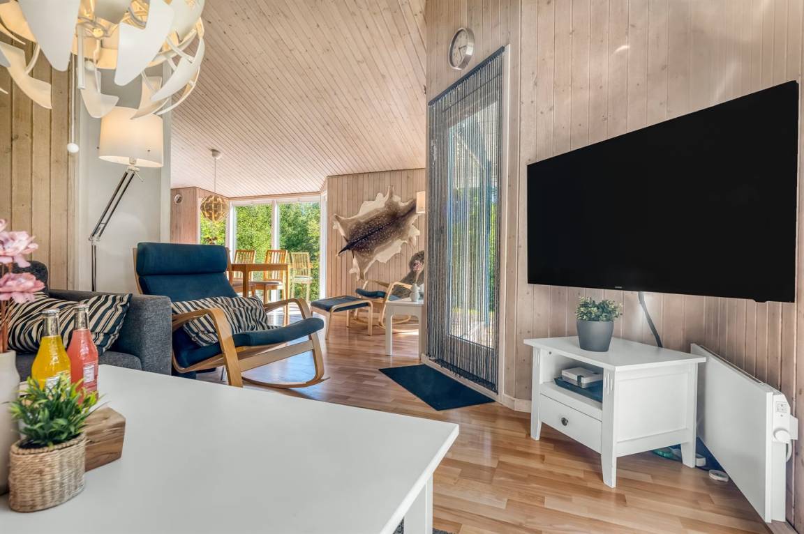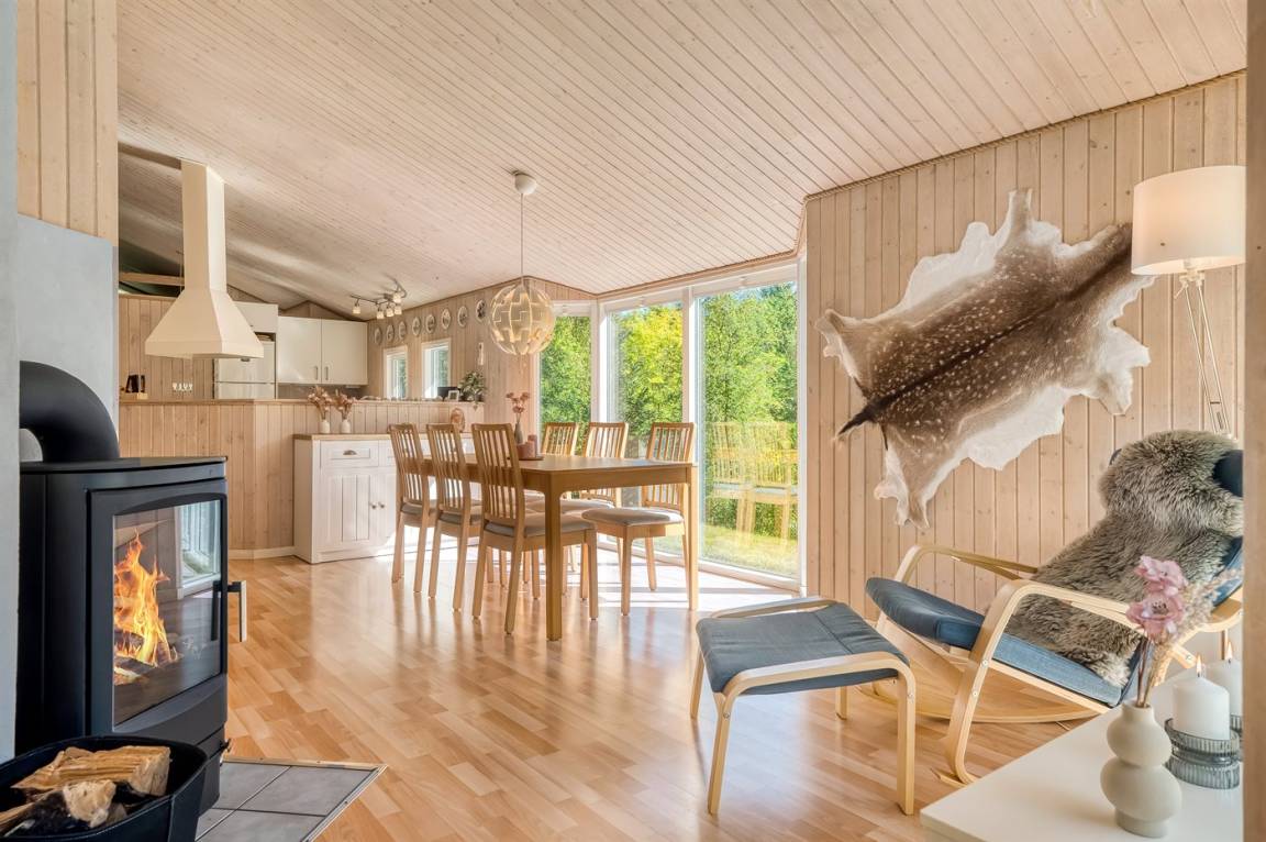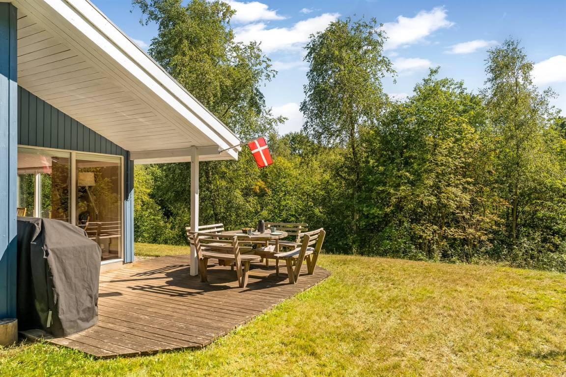 DraußenDie Ferienunterkunft liegt auf einem 2912 m² großen Gründstück, das in einem Wald/Plantage liegt. Die Entfernung zum Fjord beträgt 150 m. Es gibt einen Badesteg in der Nähe. Die nächste Einkaufsmöglichkeit liegt 5000 m entfernt. Es steht ein offenes Terrassenareal zur Verfügung. Außerdem gibt es überdachte Terrasse. Schaukel. Es steht ein Grill zur Verfügung. Parkplatz auf dem Grundstück.