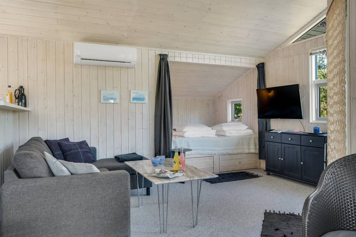 DraußenDie Ferienunterkunft liegt auf einem 3263 m² großen Gründstück, das in einem Wald/Plantage liegt. Die Entfernung zum Fjord beträgt 250 m. Die nächste Einkaufsmöglichkeit liegt 7500 m entfernt. Es steht ein offenes Terrassenareal zur Verfügung. Außerdem gibt es überdachte Terrasse. Parkplatz auf dem Grundstück.
