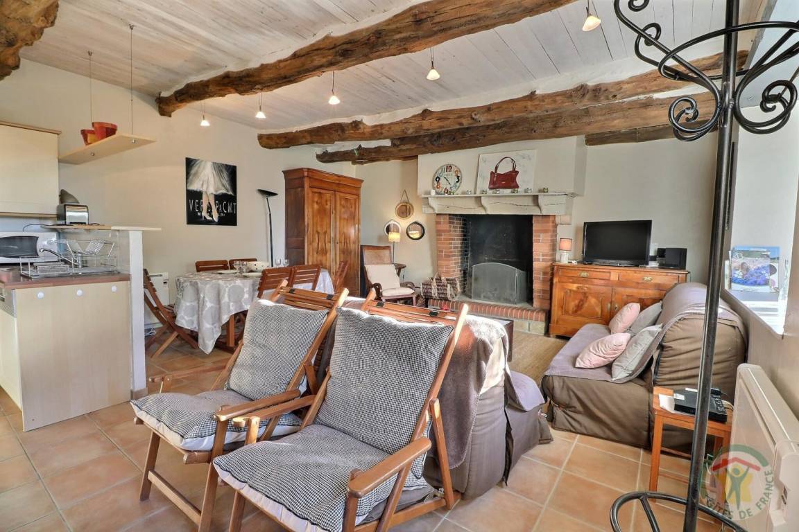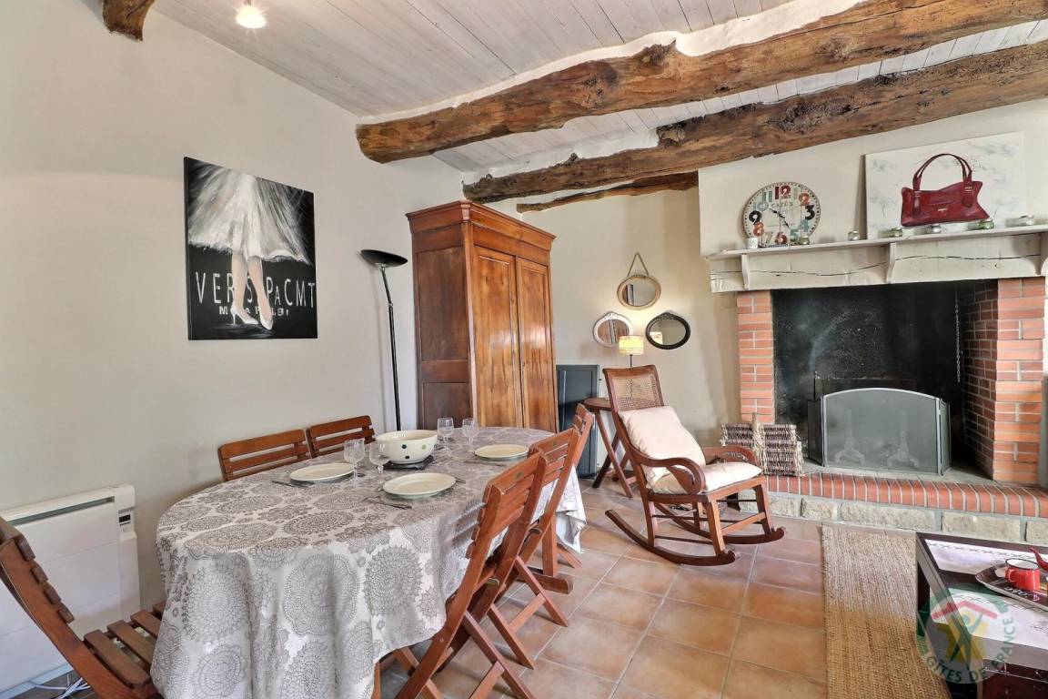 EG: Wohnbereich Esszimmer/Wohnzimmer und Kamin (Schlafcouch), ausgestattete Küche, WC. Stockwerk: 1 Schlafzimmer (1 Doppelbett), 1 Schlafzimmer (2 Einzelbetten), Bad, WC. Elektrische Heizung.