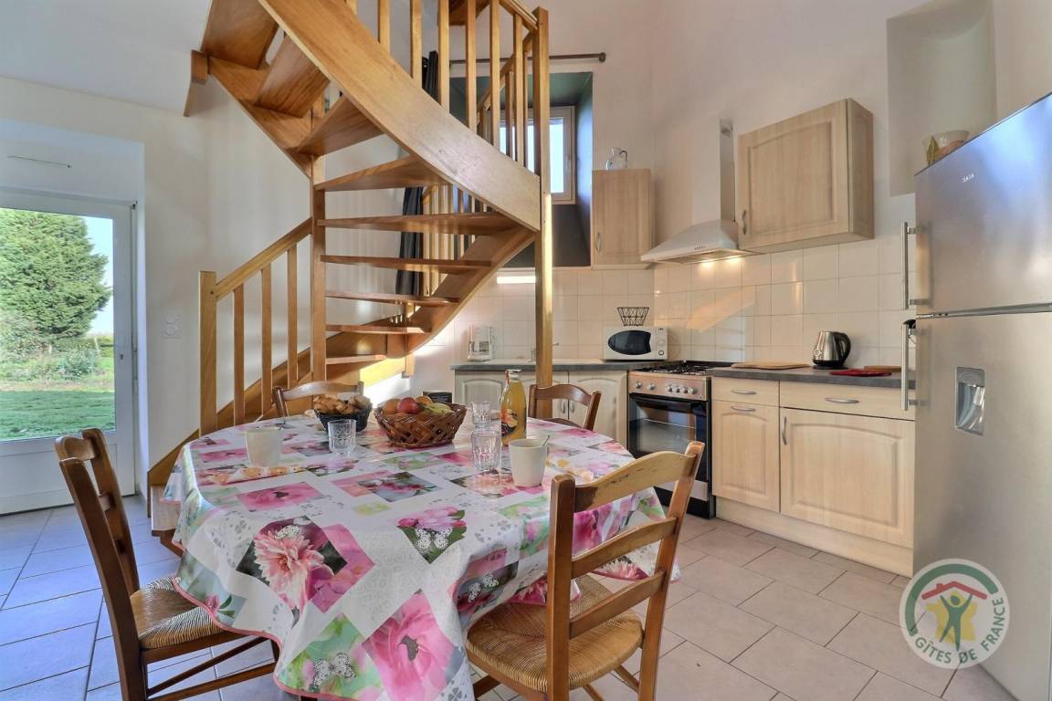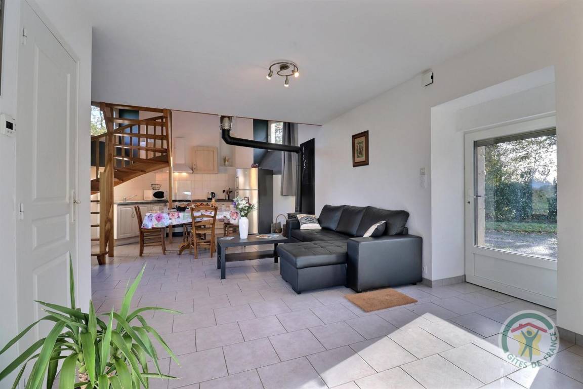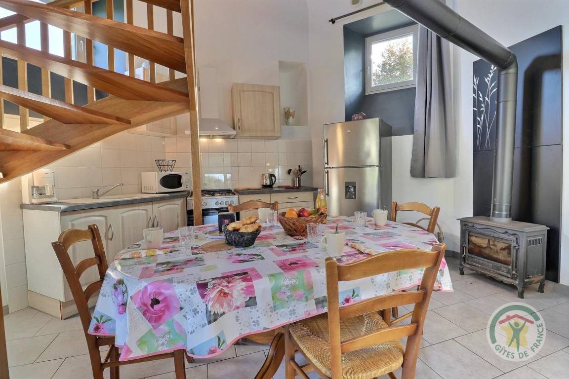 Im Erdgeschoss: ein Wohnzimmer mit Küche, ein Essbereich und ein Wohnzimmer mit einem Schlafsofa für zwei Betten in 140X190 und einem Holzofen, ein Badezimmer (WC und Waschbecken). Oben: ein Mezzanine-Schlafzimmer mit einem 140x190-Bett und einem Duschbad mit WC. Fußbodenheizung . Parken auf dem Grundstück und in der Garage.