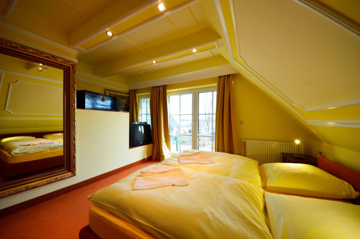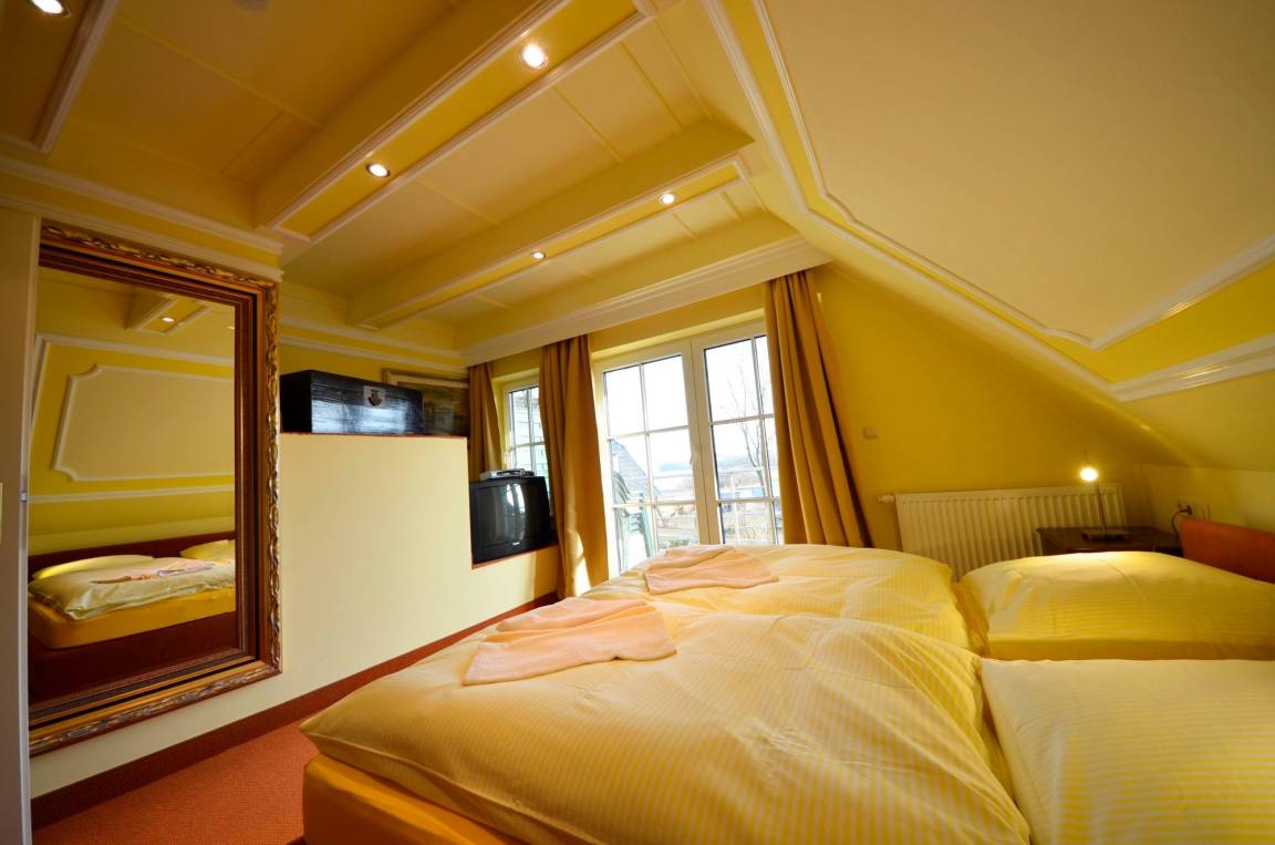 2 kleine, schräge aber gemütliche und helle Zimmer mit Einbauschränken, einmal mit Einzelbett 90 x 200 und einmal mit einem Doppelbett 160 x 200. Bettwäsche aufgezogen.