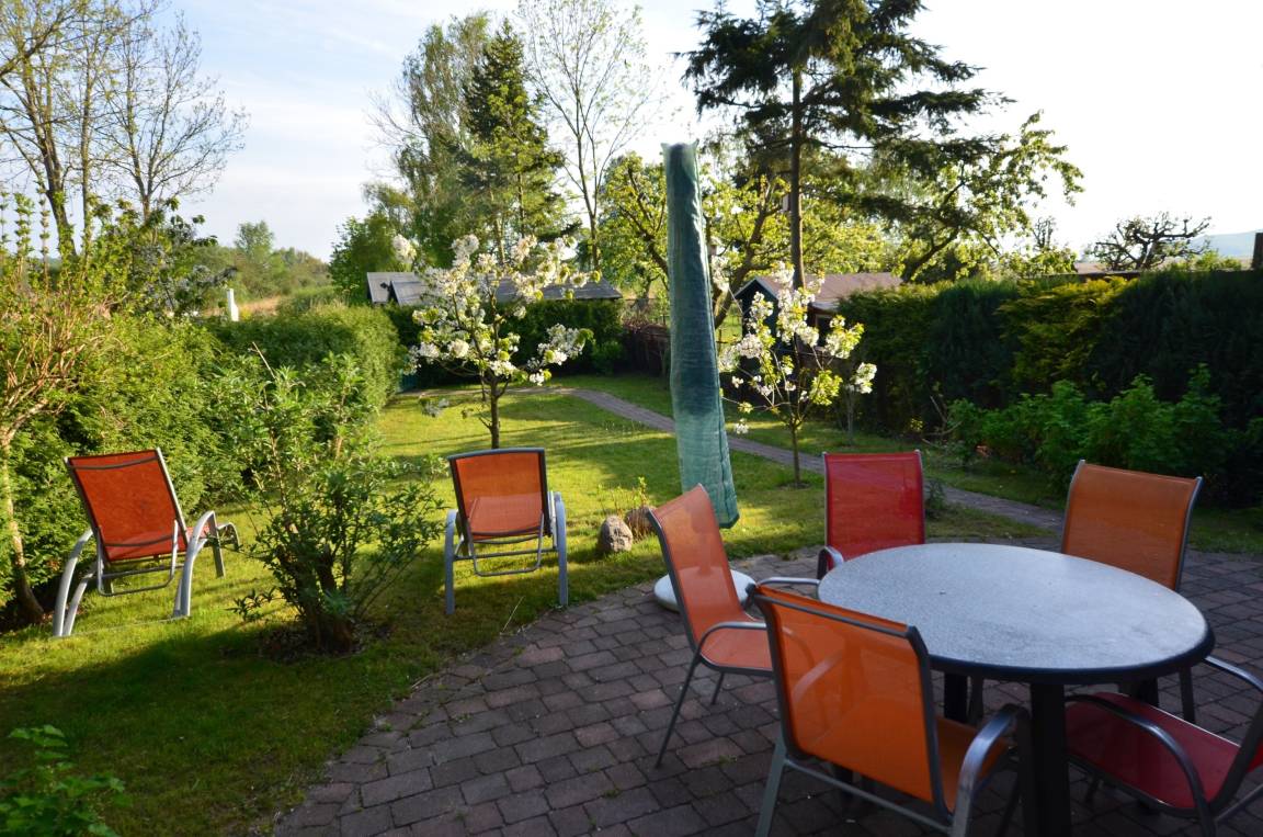 Im Anschluss an den großen Parkplatz im hinteren Teil des Gesamtgrundstücks gibt es für unsere Gäste zusätzlich eine kleine Gartenanlage mit Außengrill, Gartenmöbeln und Kinderschaukel.