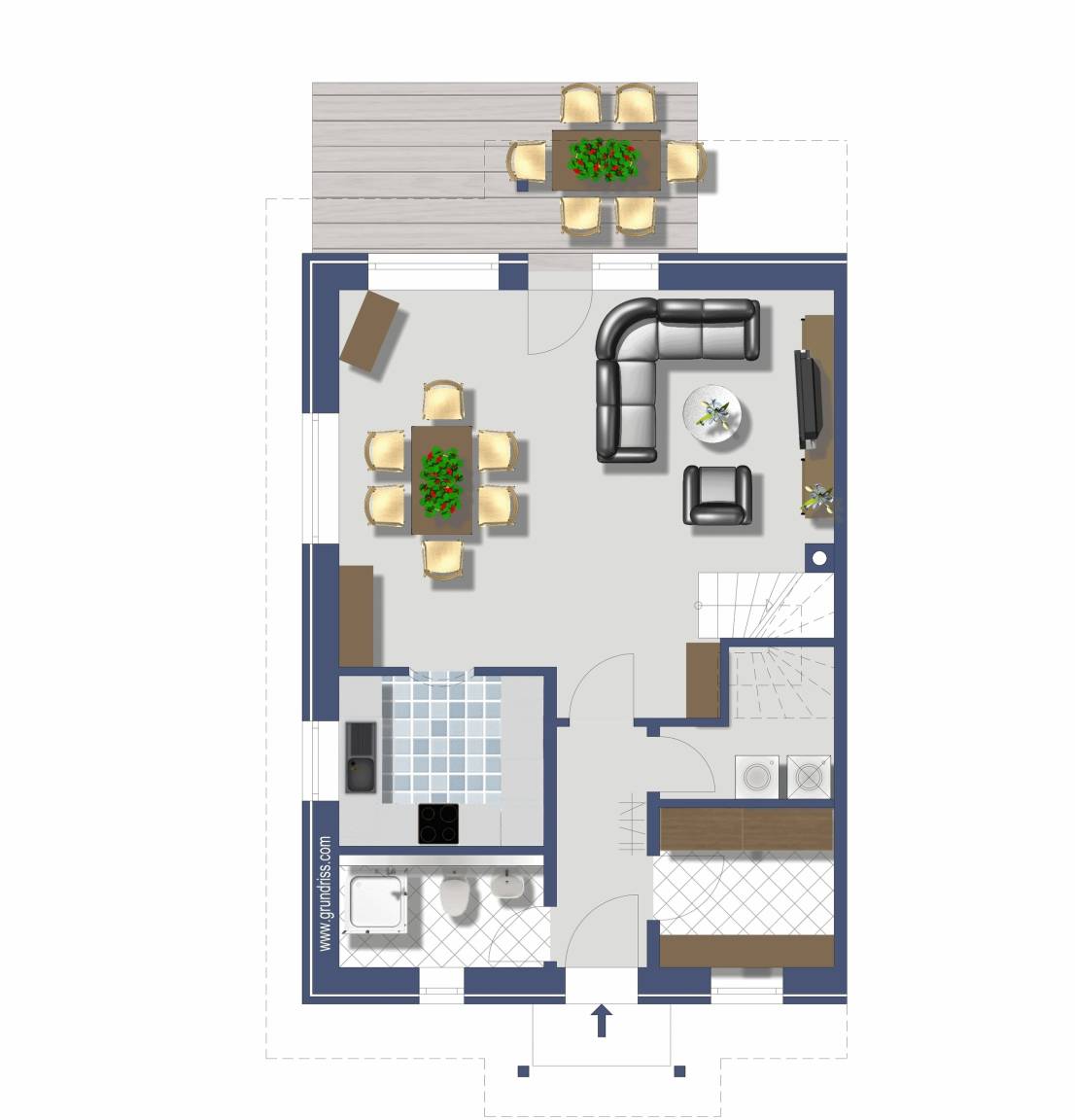 Im EG jeweils eine große Terrasse mit Gartenmöbeln, eigenem kleinen Gartenteil,