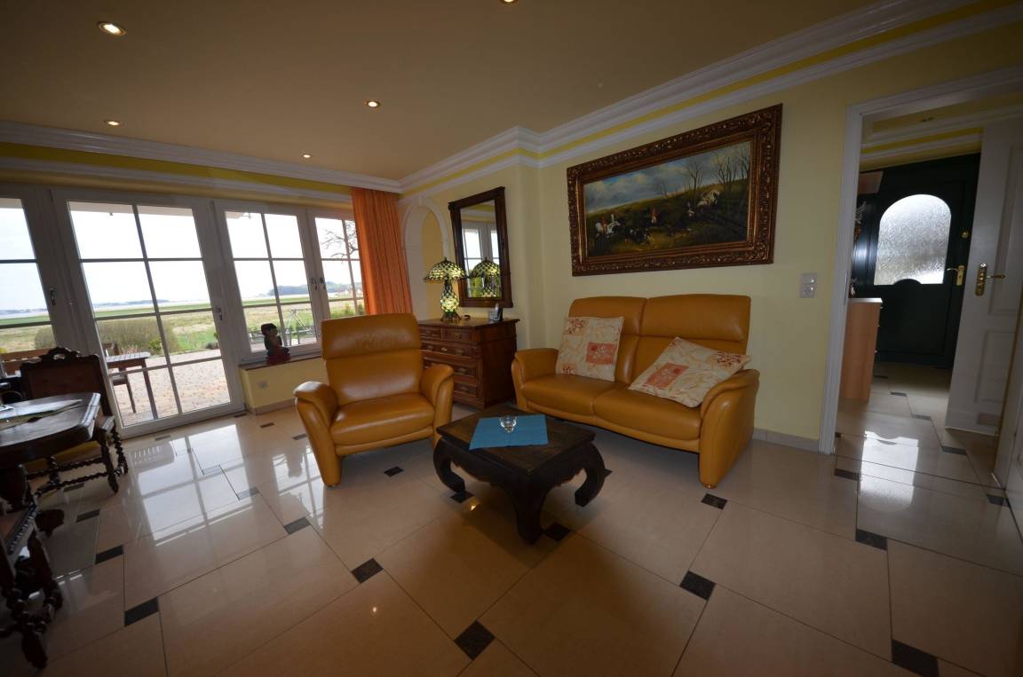 Die reetgedeckte und verklinkerte Doppelhaushälfte liegt in der erste Reihe mit