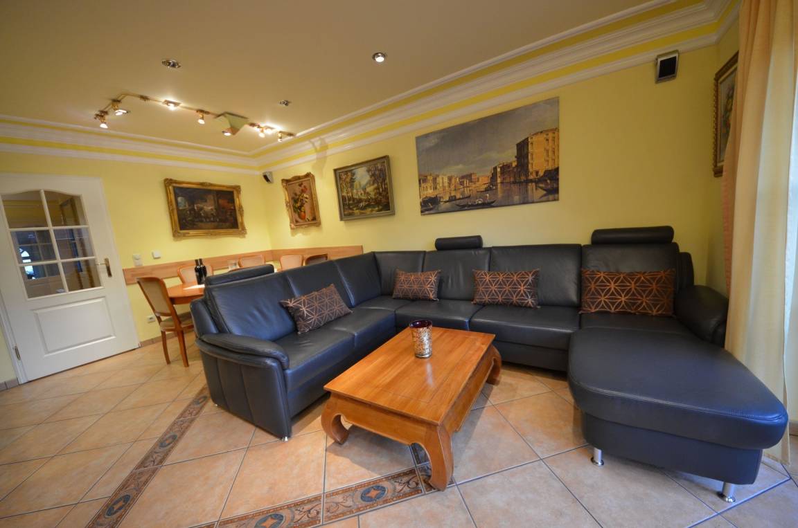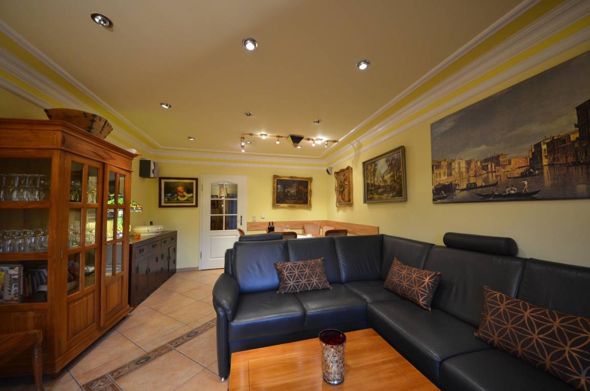 mit Fußbodenheizung schöne Couch-Garnitur mit Opiumtisch, Esstisch m. Stühlen Geschirrschrank, Sat - TV mit ca. 40