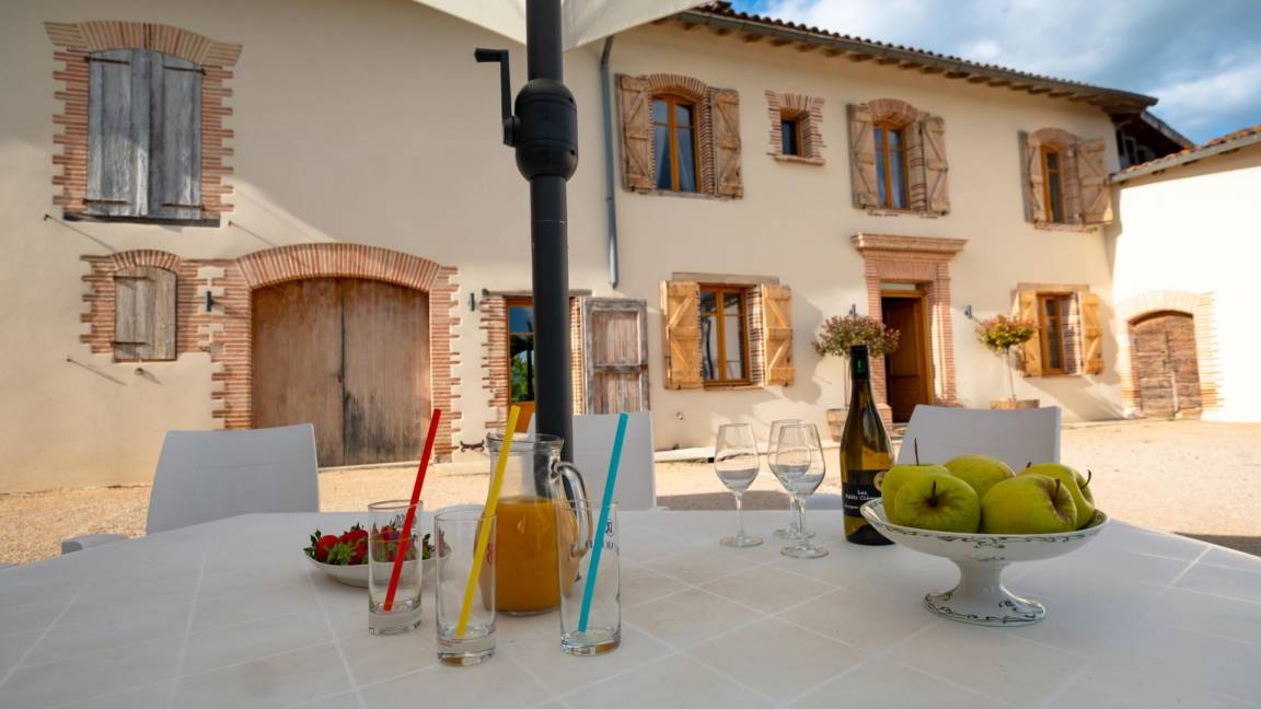 „We were warmely welcomed to this recently restored winery farm house. The house could not have been better, one of the first places I've stayed in where the house in reality was more impressive than the photos portrayed! Every detail down to the USB sockets in every room, was ingeniously thought of! This house has been restored in an ultra modern contemporary fashion yet they have kept lots of the original features.. it's works perfectly! We were 5 adults and our 5 year old son, we had more than enough space. The house easily accommodates 8 adult couples sharing the 4 spacious bedrooms. The swimming pool was more for esthetics as we came during the middle of October.. although during our week we had temperatures exceeding 20 degrees! The water temperature was 21 degrees.. and with some of the group being English we did take a plunge! The house is situated a 5 minute drive from shops and to the centre of the town gaillac yet is super peaceful and quiet! I could not fault this house! We will be back.“