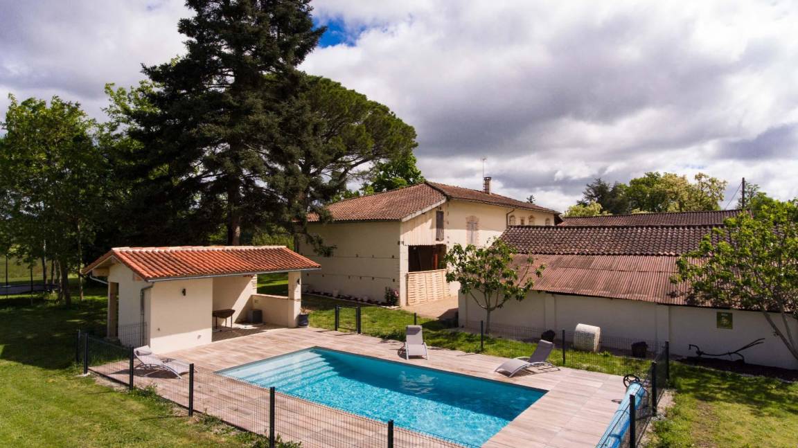 „Eric et Aude sont des hôtes accueillants et à l'écoute. Séjour très agréable dans ce magnifique gîte. ensemble très propre, bien décoré avec des pièces spacieuses et confortables. Equipements intérieurs et extérieurs au top! il ne manque rien! beaucoup de plus tels que table de ping pong, baby foot, trampoline. A l'intérieur cuisine entièrement équipée, salon avec grande tv dvd enceintes.. Idéal pour famille nombreuse et avec enfant en bas âge. tout pour se détendre et profiter du jardin et de la piscine. lieu calme et convivial. Nos hôtes étaient à notre écoute pour la découverte des environs, toujours de bons conseils. géographiquement, le gîte est proche de toutes commodités et également des lieux touristiques environnants. La perle de Gaillac!“