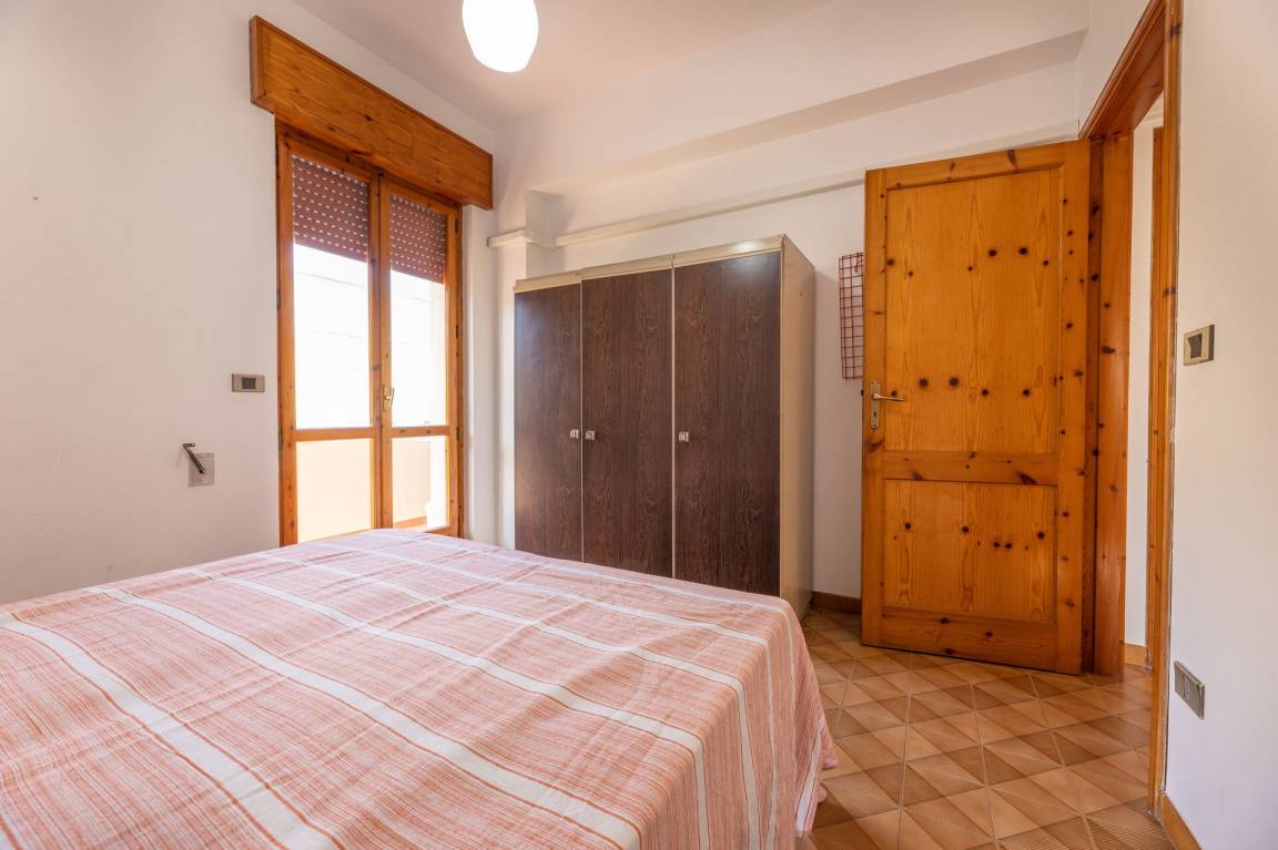 Schlafzimmer 1: Doppelbett, Ausgang auf den Balkon.