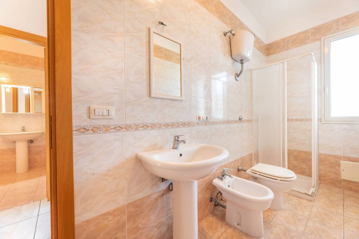 Badezimmer 2: Waschbecken, WC, Bidet, Dusche.