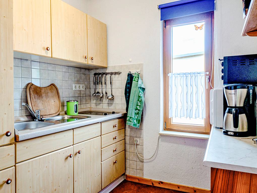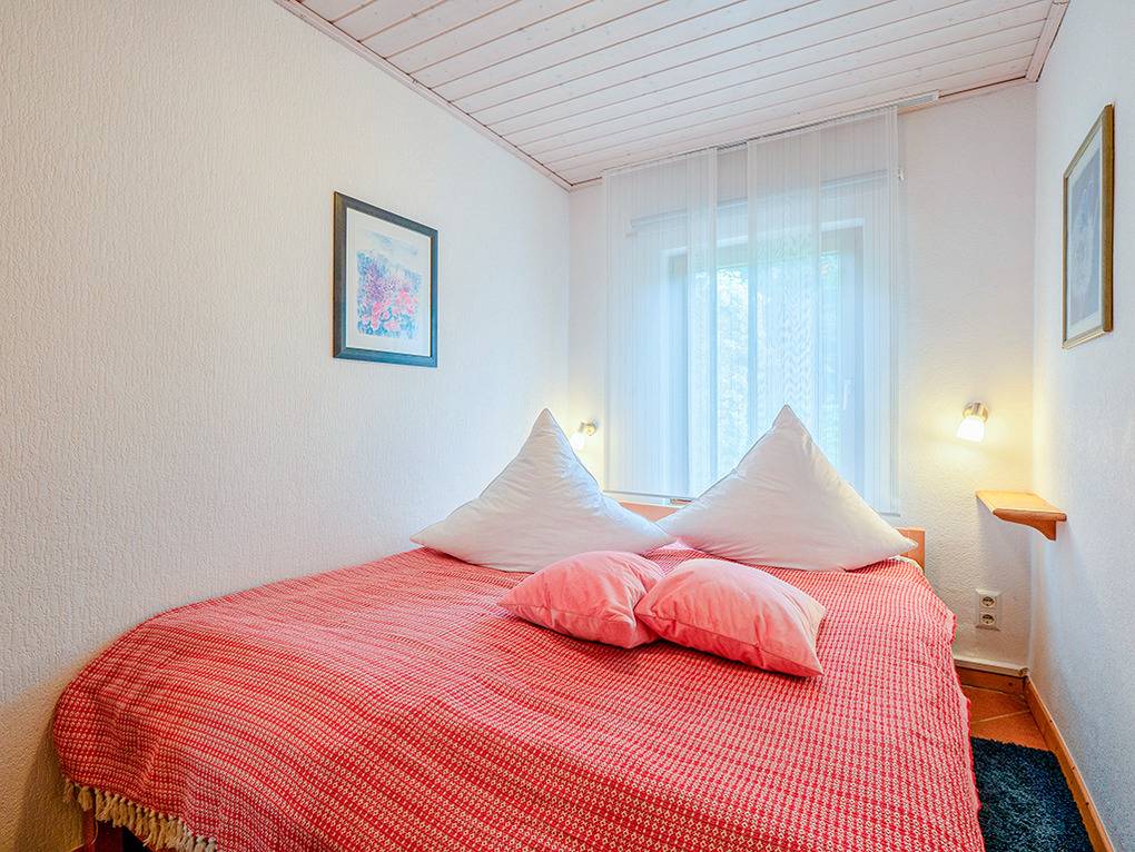 D 47.122 Ferienhaus 2-4 Pers.: 2-Zimmerhaus mit 43 qm Wohnfläche. Gemütlicher Wohn-/Essraum mit Sitzgruppe (Schlafsofa 2 Pers), Kaminofen (nur Dekoration!), Sat-TV, Esstisch. Kleine Pantry-Küche (Mikrowelle, Mini-Backofen). Doppelzimmer. Bad: Du, Wb, WC.