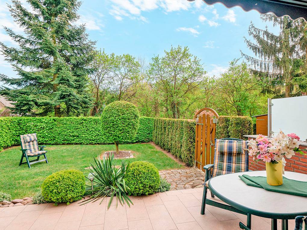 Haus: Bungalowhaushälfte mit schönem Garten. Sehr gepflegte Einrichtung. Internetzugang über W-Lan. Heizung über E-Radiatoren. Nichtraucherhaus. Überdachte Terrasse mit Sitzmöbeln, Grill. Schöner, abgeschlossener Garten mit Spiel- und Rasenfläche. Abstellraum für Fahrräder. 1 Pkw-Stellplatz vorhanden.