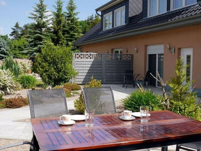 Das helle Tageslichtbad verwöhnt mit einer großen Dusche im Wellness-Design, zwei Waschbecken und viel Ablagefläche. Im Flur bieten Garderobenmöbel und ein großer Kleiderschrank viel Stauraum. Aus Küche und Essbereich treten Sie direkt auf die Terrasse heraus. Frühstücken Sie in der Morgensonne, machen Sie es sich gemütlich unter dem Sonnenschirm, entspannen Sie hier bei einer Tasse Kaffe und genießen Sie den Blick ins Grüne. Bettwäsche und Handtücher mitbringen oder gegen Aufpreis mieten. Herzlich willkommen!