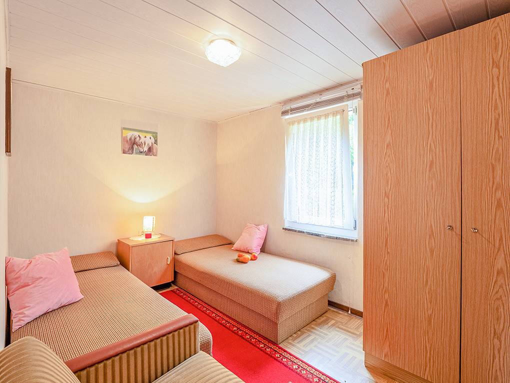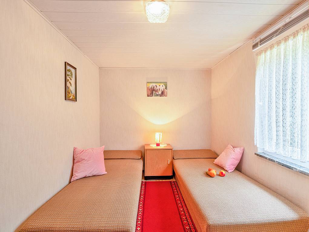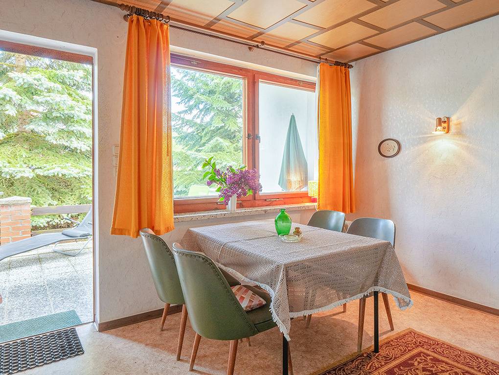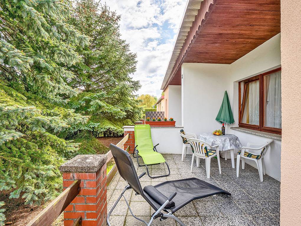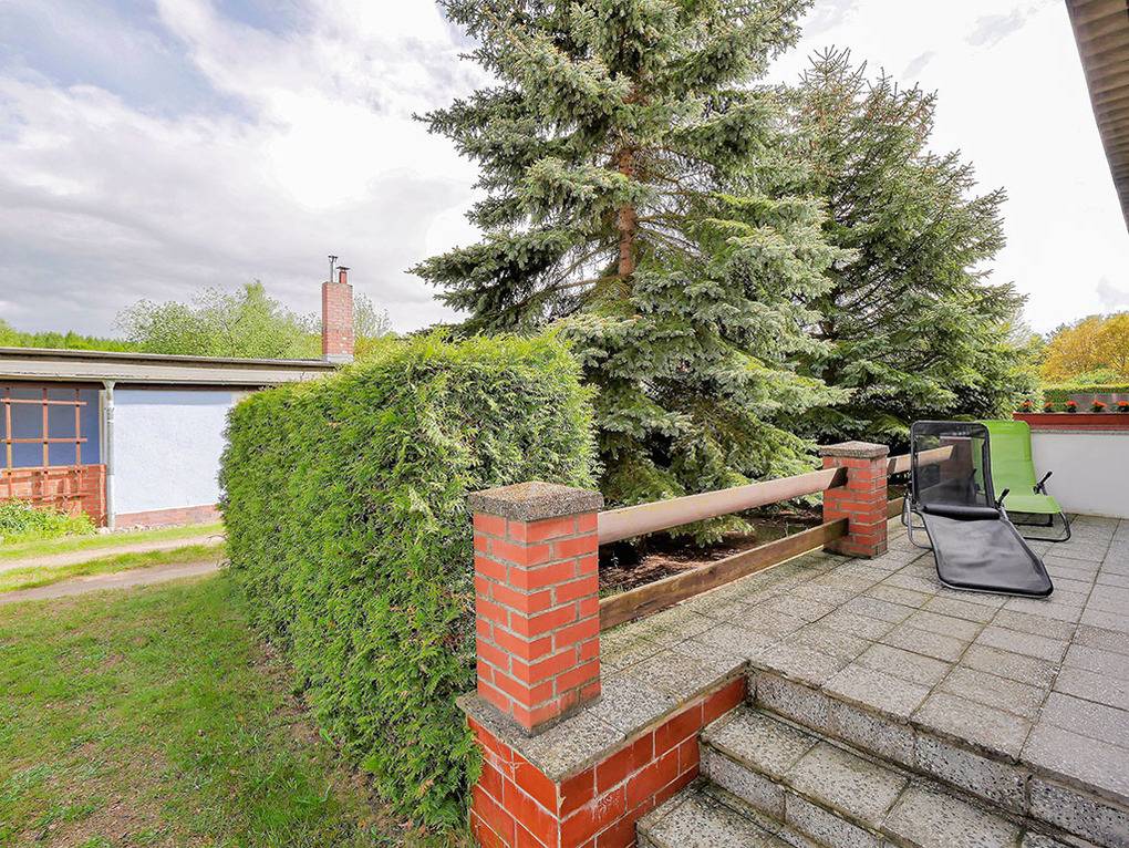 Haus: Zwei großzügige Bungalowhaushälften mit gepflegter, gemütlicher Einrichtung. Zwei Schlafzimmer pro Haushälfte. Heizung über E-Radiatoren. Einladende überdachte Terrasse mit Sitz- und Liegemöbeln. Spiel- und Rasenfläche am Haus. Nichtraucherhaus. 1 Pkw-Stellplatz/Haushälfte. Hinweis: Es handelt sich um Urlaubsunterkünfte, deshalb keine Vermietung an Handwerker bzw. Monteure, Jugendgruppen oder Junggesellenverabschiedungen.