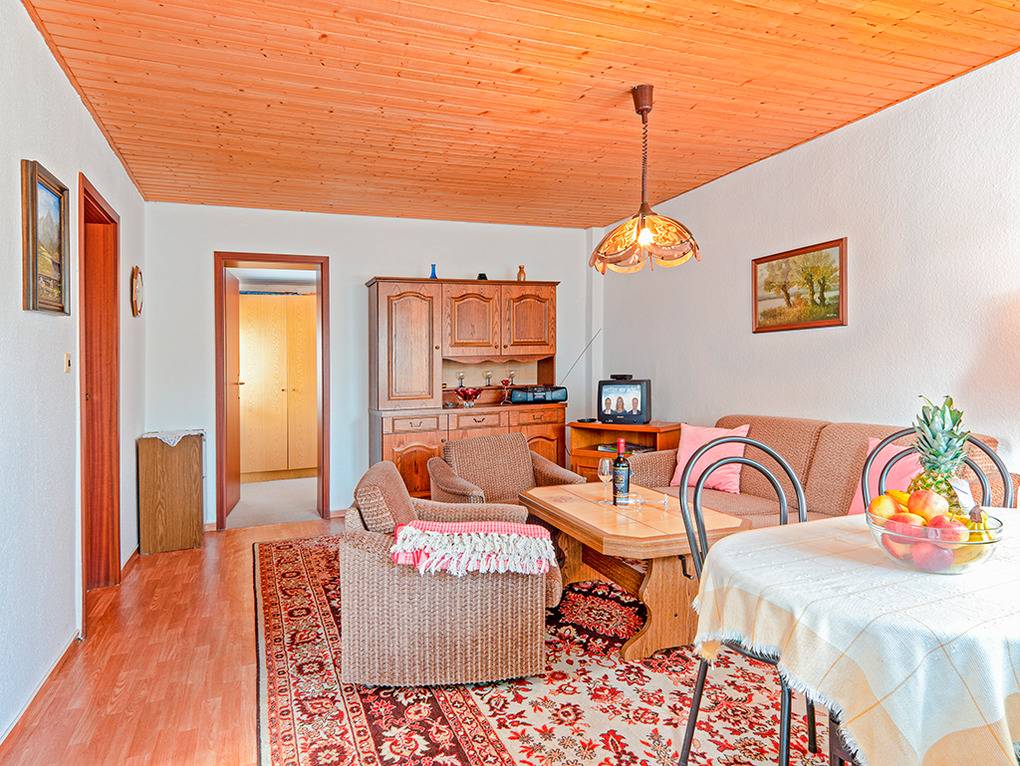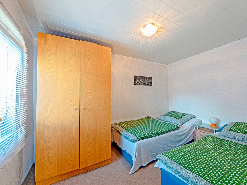 D 47.120 Ferienhaus 2-4 Pers.: 3-Zimmerhaus mit ca. 60 qm Wohnfläche. Gemütlicher Wohn-/Essraum mit Sitzgarnitur, Sat-TV, Esstisch. Separate, kleine Küche (Backofen, Mikrowelle). 2-Bettzimmer. Kleines 2-Bettzimmer mit Etagenbett. Bad/WC.