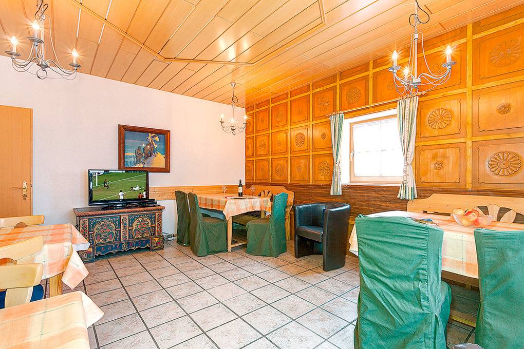Parterre: Gemütlicher Aufenthaltsraum mit Sat-TV, DVD-Player, Kinderspielecke. Moderne Küche mit Küchenzeile (Backofen, Spülmaschine).