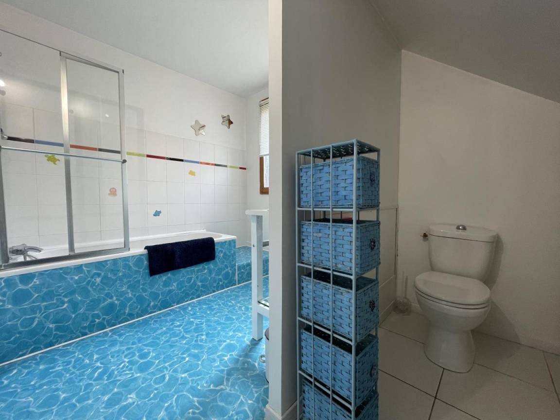 2. Etage: 3 Schlafzimmer (2 140-cm-Betten, 1 120-cm-Bett), Badezimmer/WC.